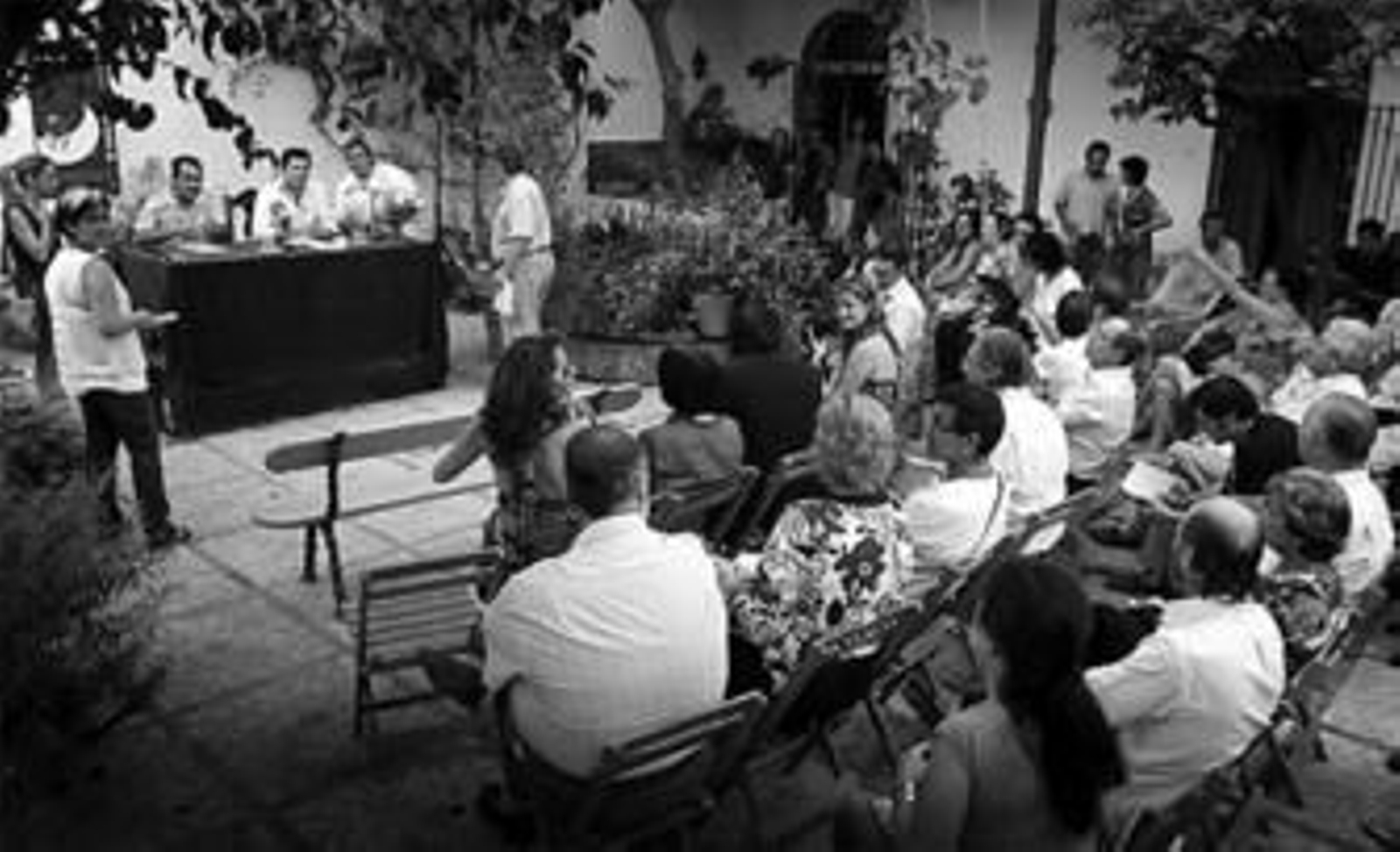 El escritor Pedro Sevilla presentó ayer en el jardín de Caballeros 36, su nueva obra 'Todo es para siempre' (Renacimiento), junto al también poeta Enrique García-Máiquez. Una obra antológica a la que se suman además diez poemas inéditos del autor.