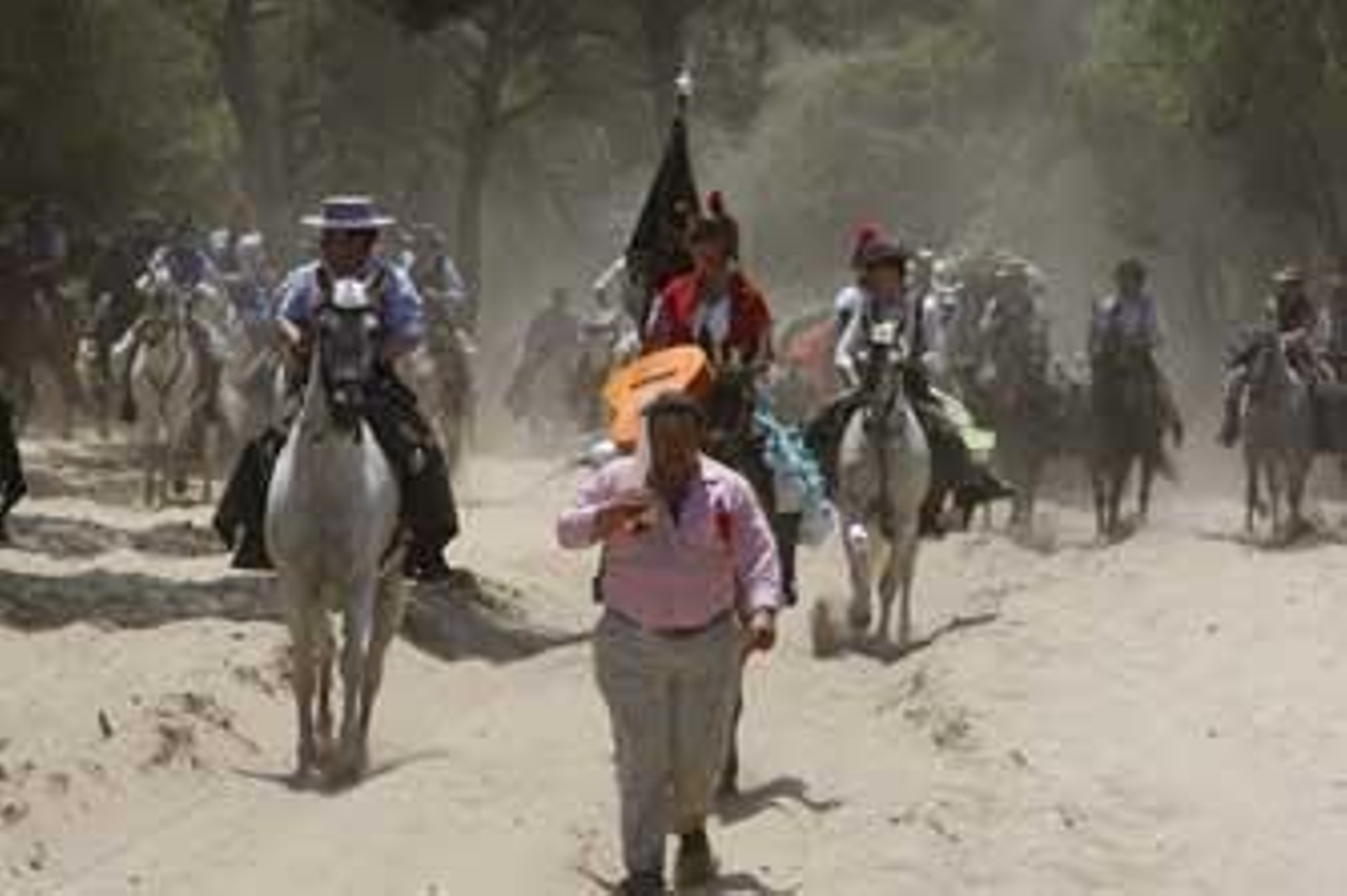 La mañana despertó con algunas nubes efímeras tras la primera dormida del camino, como gusta llamar a la acampada Felipe Morenés. En los carros, que dan escolta al repujado de plata del Simpecado, y en los restantes vehículos, se desperezaban sus moradores para empezar a mirar de frente al día en el que, teniendo muy cerca Sanlúcar, muy vivas las resacas, se caminó hacia los adentros de la maravillosa armonía de Doñana. Es ese despertar que tiene su propia norma rociera, la de cada mañana, la de cada año, la de la toda la vida cuando se va a afrontar el segundo día. Carros y vehículos ordenados en su desorden, gente acercándose a los grifos de agua de la Marismilla; rostros que delataban la primera noche en cuerpos inadaptados a las acampadas; rocieras maquillando sus rostros -antes muerta que sencilla-; batas, volantes, caballerías relinchando. Trajes cortos y ala ancha en los tocados, una reverencia a la ortodoxia caminante rociera, que en Jerez es signo indeleble de señorío, elegancia y gallardía en el que el hábito necesariamente tiene que hacer al monje para que las apariencias no estropeen el manido estereotipo jerezano. Es parte de ese ritual del camino, que cuando llega mayo -este año en junio- revoluciona la paz y el reposo de Doñana que cambia su eterna calma con sonidos de pasos de animales, ronroneo de motores, toques de tamboril, palmas a compás y sevillanas festeras.