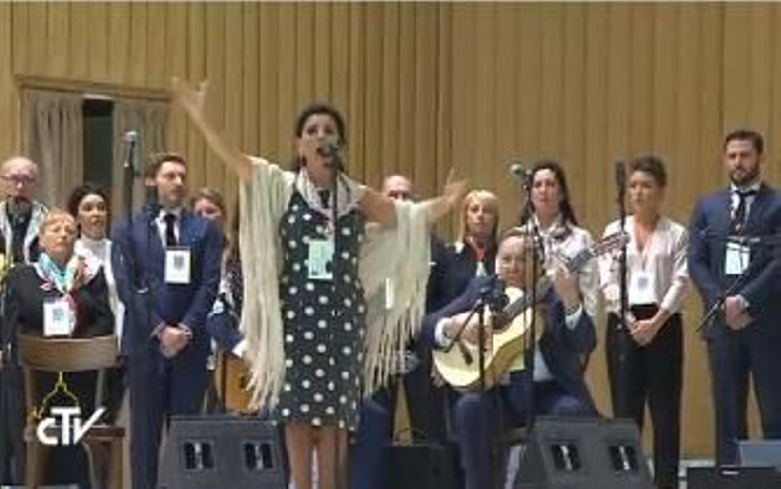 Durante la audiencia del papa al pueblo gitano hubo varias exhibiciones y entre ellas la de la cantaora, gitana y nacida en Jerez de la Frontera, que entonó una primera canción junto con un grupo de 13 personas y la guitarra de Cepero.