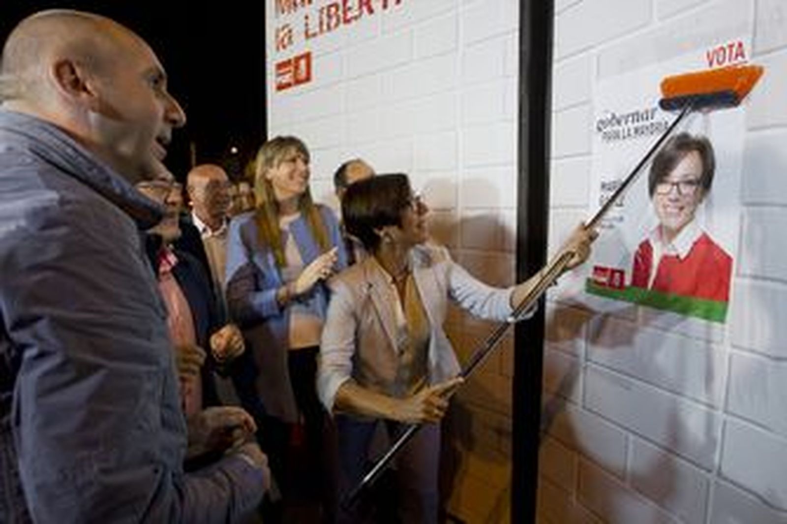 El PSOE eligió la Carretera de Cádiz -un distrito que en las últimas elecciones europeas y andaluzas le ha votado mayoritariamente- para dar el pistoletazo de salida a su campaña de cara al 24-M. Fue junto a la estación de Metro de El Torcal, al lado de la Agrupación Socialista. La pegada de carteles se hizo sobre El muro de la libertad colocado para la ocasión. El partido recuperó carteles de anteriores campañas municipales, entre ellas, la de 1979, con el desaparecido Pedro Aparicio. Un toque vintage en las imágenes que suponía rescatar la figura del que fue el primer alcalde de la democracia del Ayuntamiento de Málaga.