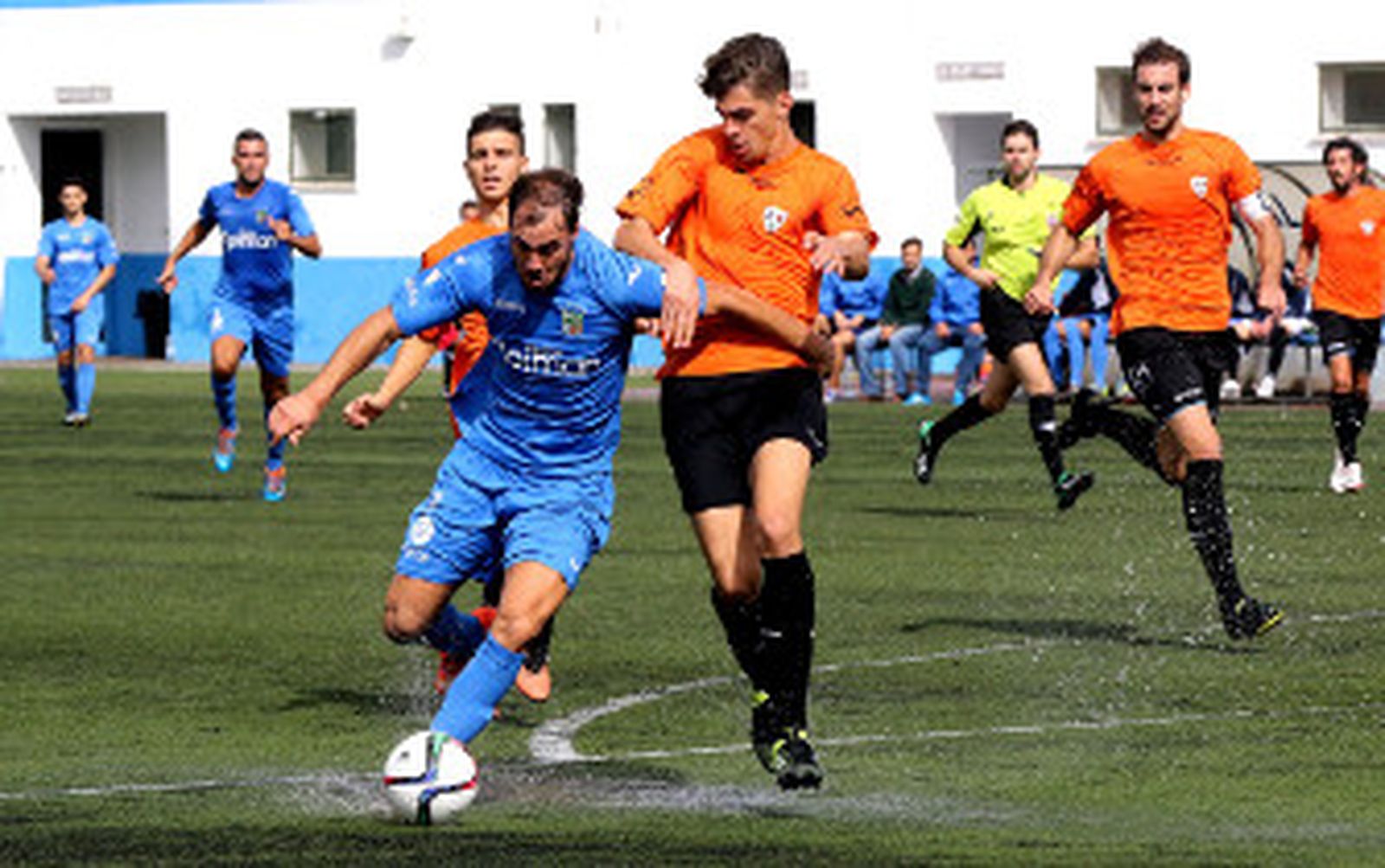El primer tiempo, con mucha agua acumulada en el campo, fue plácida para ambos guardametas, aunque tuvo que intervenir mucho más el visitante que el local. Además, arrancó con un codazo del ariete Agustín a Diego Galiano que le costó la amarilla y que sirvió para calentar un ambiente que, afortunadamente, se fue relajando poco a poco. El colegiado tuvo mano izquierda, fue dialogante y se contuvo con las amonestaciones.