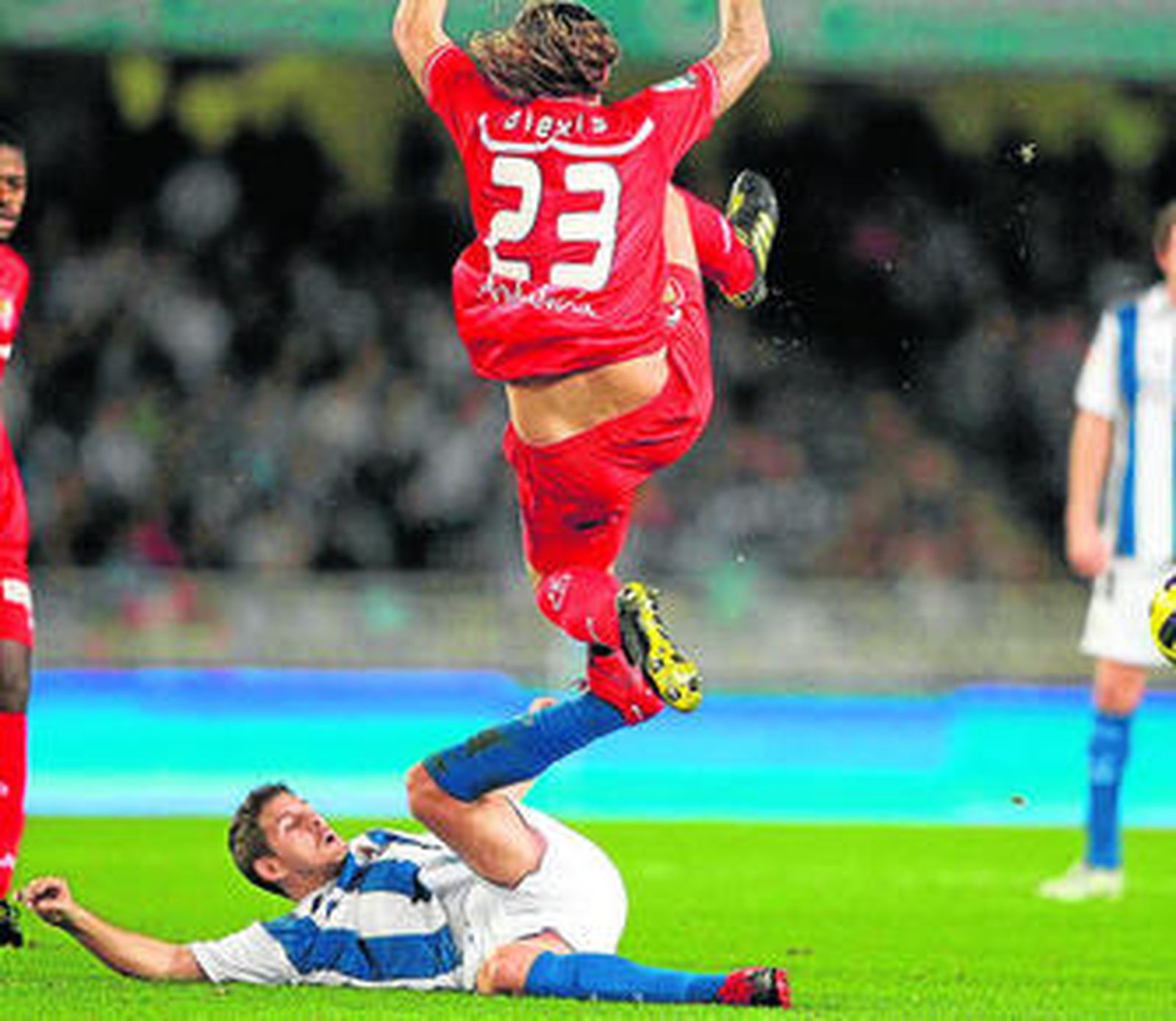 No pudo hacer lo mismo el guardameta chileno en el minuto 63 porque, en otra acción a balón parado, que es la auténtica cruz de los donostiarras, Luis Fabiano culminó en gol una acción combinada de su equipo.