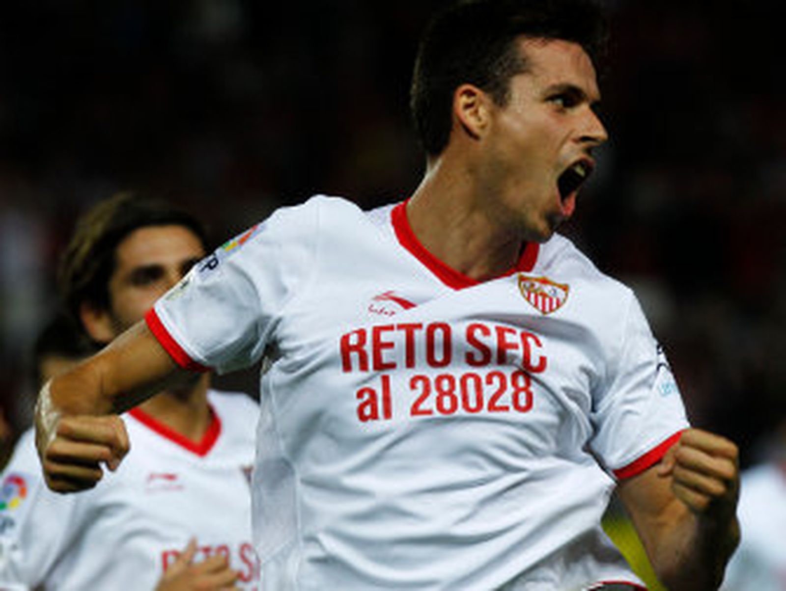 Esto despertó a los sevillistas, que enlazaron varias ocasiones mediada la primera parte, pero el cabezazo de Cáceres se fue alto y tampoco acertaron a marcar Armenteros, con un tiro flojo, Navas en un disparo que rechazó Toño, ni el chileno Medel desde lejos.