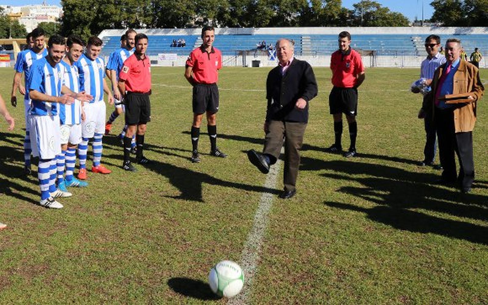 Manuel Fernández Osorio recibió el pasado viernes en la Gala de la Federación Andaluza celebrada en Cádiz el homenaje del fútbol provincial por su trayectoria en el mundo del fútbol (fue el primer jerezano internacional con España) y ayer recibió también el calor del industrialismo realizando el saque de honor en el partido contra el Bazán.