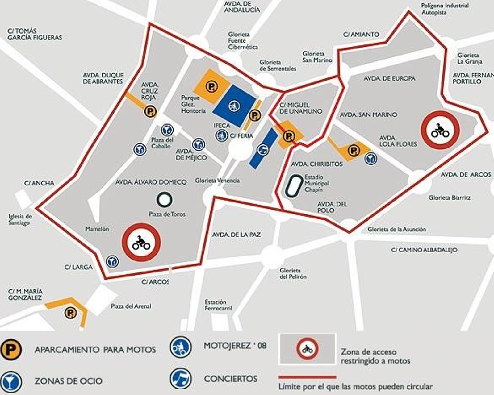 Restricciones de circulación y aparcamientos en el centro de la ciudad durante el Gran Premio de Motociclismo 2008