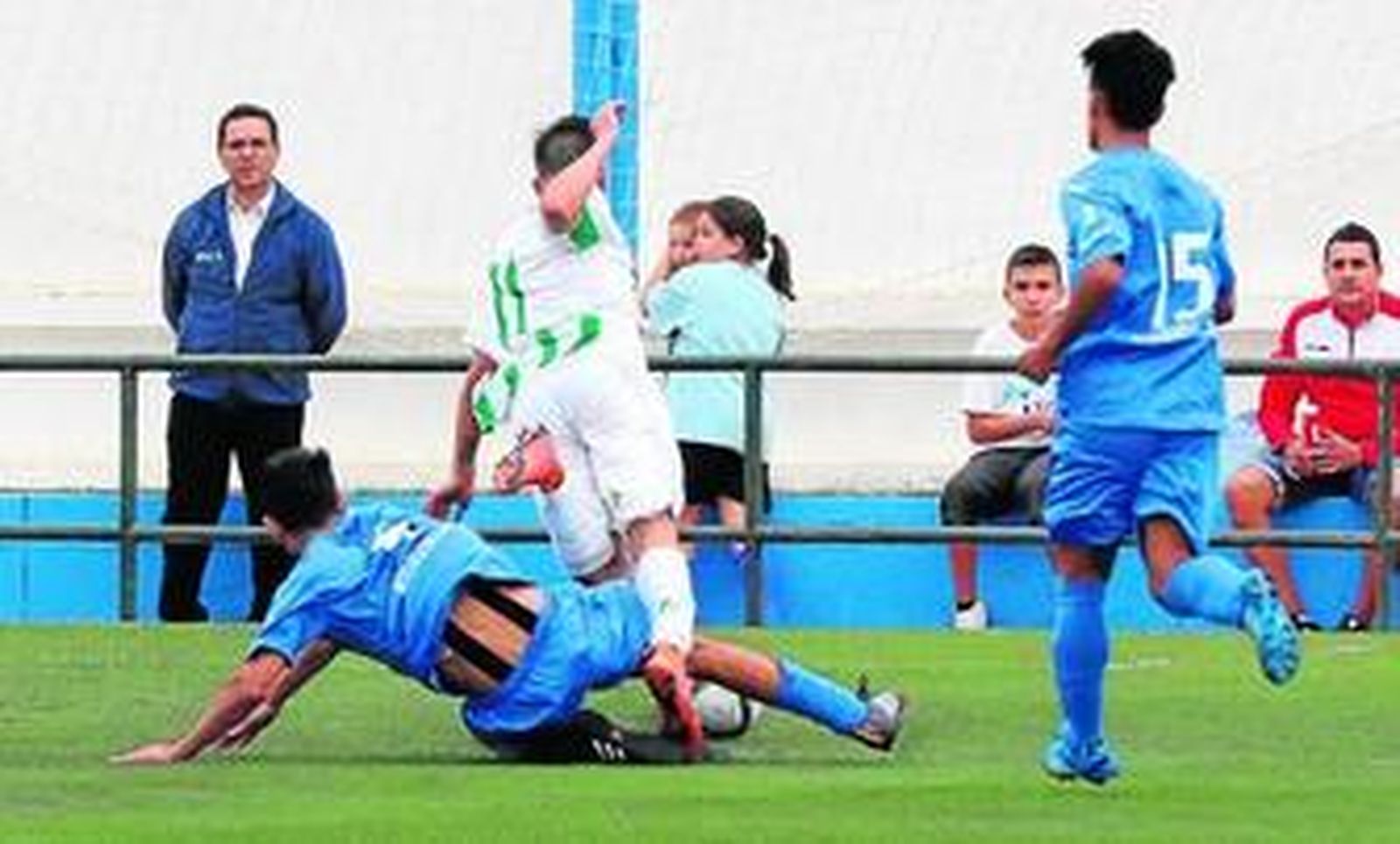 Quiles, esquinado, disparó mal tras envío de Sebas y Juan Rosillo casi le roba la cartera a Jhony, que reaccionó despejando a cóner. Y en esas llegó la mejor ocasión del partido: Jordi habilita a Quiles con un balón bombeado que supera a Luis Castillo pero el delantero blanquiverde se entretiene, el balón bota mucho -como siempre- y cuando remata Lebrón se le ha echado encima y tapa el disparo. De ahí al descanso, un buen centro del excordobesista José Vega al que no llega Javi Tamayo, ejemplo de lo que fue el partido para el Guada: merodea arriba pero le cuesta llegar y cuando lo hace, el último pase no encuentra rematador.