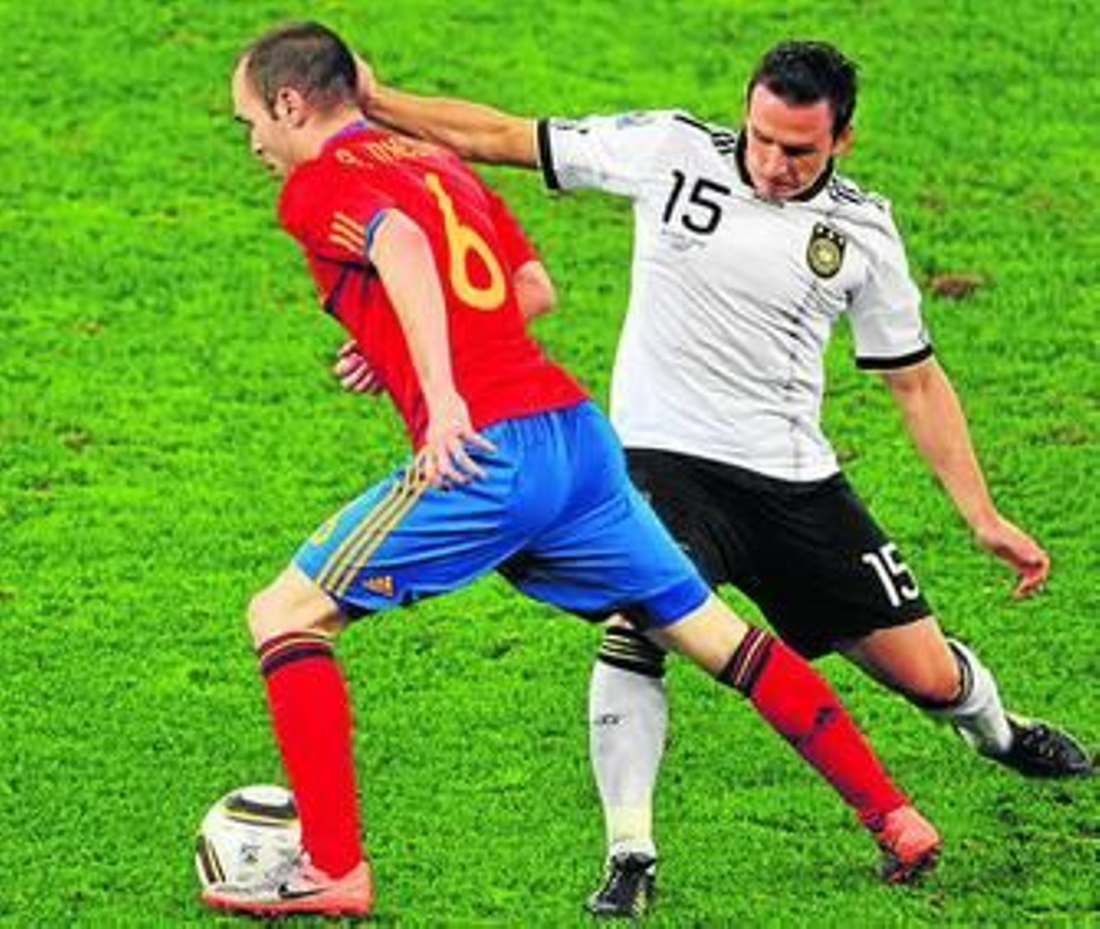 Alemania, por mucho que se quiera, no está cómoda con el estilo que había reinventado. Por momentos en este Mundial que ya abandona quiso ser España. Nosotros inventamos un modelo, el modelo de la picaresca frente a la evolución física del fútbol. Ese estilo cervantino se encarnaba en el futbolista bajito, pero inteligente, vivo e ingenioso. Digamos que ese landismo mejorado nada tenía ya que ver con las películas del actor -Alfredo Landa- que inspira el vocablo inventado. La lucha contra el prototipo alemán se iguala, sobre todo si el producto alemán se transforma interesadamente en algo parecido a lo hispano. El futbolista cuadriculado, físico, de raza aria, ojos grises y cabello rubio no se cumple tan a rajatabla en el fútbol alemán. Existen Schweinsteigers que recuerdan a los Briegel, Rumenigge y compañía, pero también la evolución ha traído un fútbol de toque, inspirado en la tendencia de los Xavi e Iniesta que hasta tiene apellido aceitoso porque sencillamente tiene raíces mediterráneas, el turco Özil.