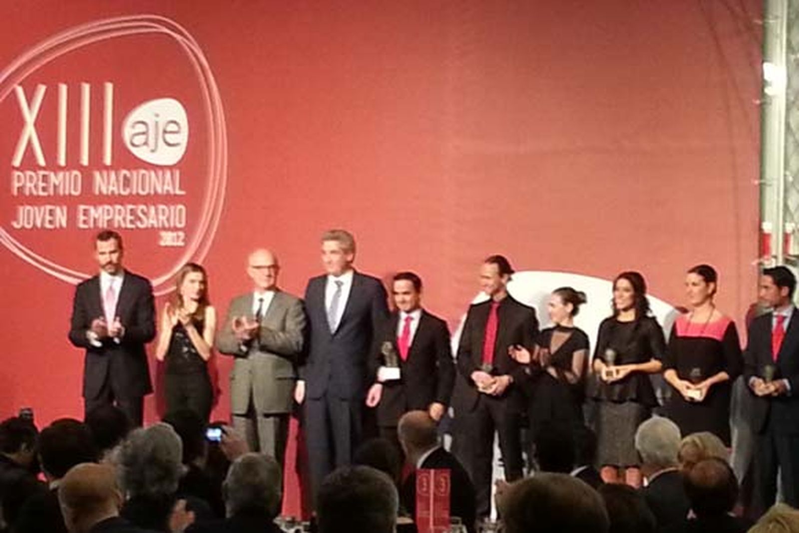 El Príncipe, que fue el último en tomar la palabra antes de la cena, mostró una vez más su compromiso y admiración hacia los jóvenes empresarios, especialmente con aquellos que creen que "con esfuerzo, compromiso, rigor e ilusión innovadora se pueden cambiar las cosas". Por ello, en su nombre y el de Doña Letizia expresó su satisfacción por "compartir una celebración que, aún en los tiempos difíciles que vivimos, es importante mantener para seguir dando prestigio y ánimo al impulso creador y emprendedor que os caracteriza". Además, felicitó tanto a los ganadores como a los finalistas y les animó a que sigan "por la senda de la excelencia".