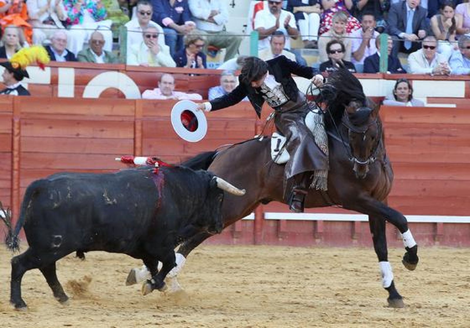 Como prueba de convicción el jinete jerezano sacó una muleta pero aquello no fue concluyente, el público se dividía cada vez más y el presidente se mantenía en sus trece mostrando amenazador el tercer pañuelo.
