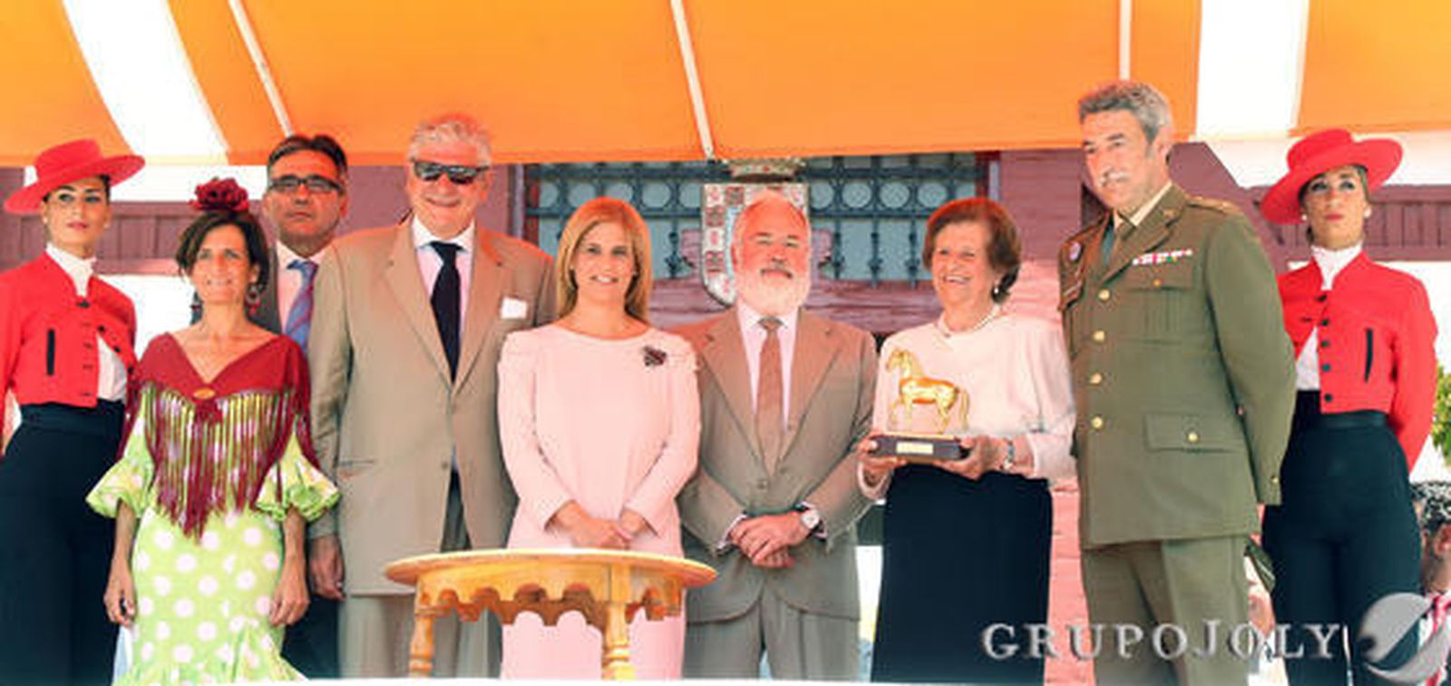 La viuda de Ramón Guerrero González, hija del dramaturgo y poeta José María Pemán, recogió emocionada y arropada por dos de sus hijos el 45 Caballo de Oro veinte semanas después de la muerte del ganadero