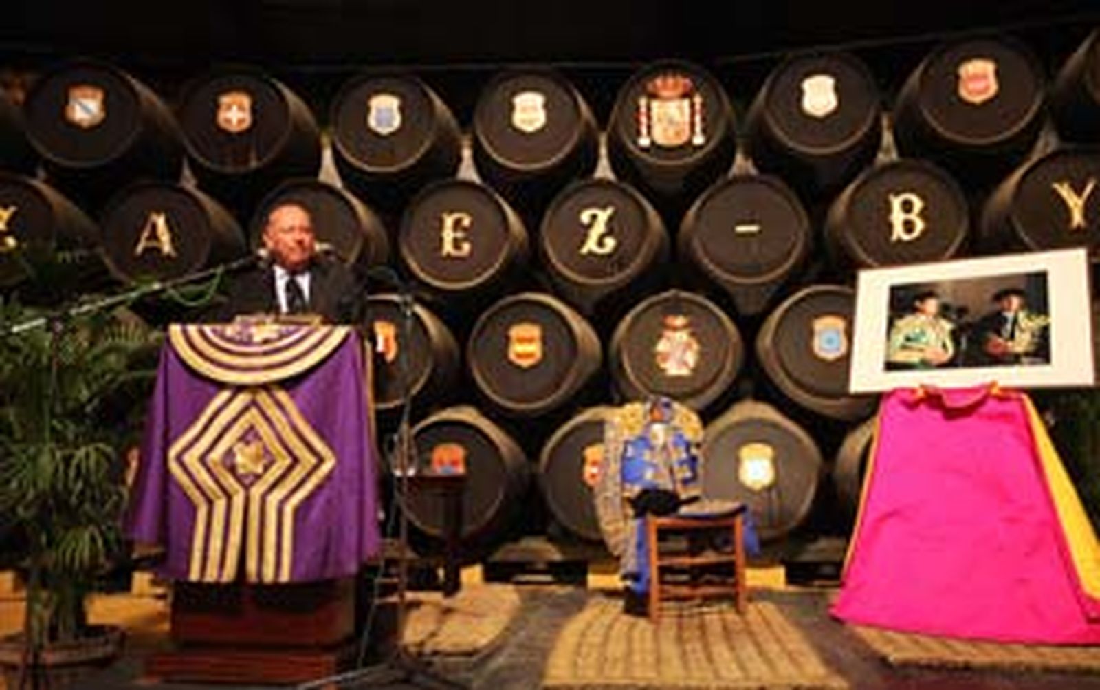 Rodríguez Gómez recordó que el pregón taurino cumple veinticinco años y se congratuló de estar en la Bodega La Concha, escenario de tantos pregones, y "palacio de la palabra", para agradecer a Pedro Revuelta, vicepresidente del consejo de administración de González Byass, presente en el acto, su anfitrionazgo, y a la delegada municipal de Cultura y Fiestas, su asistencia en representación de la alcaldesa.