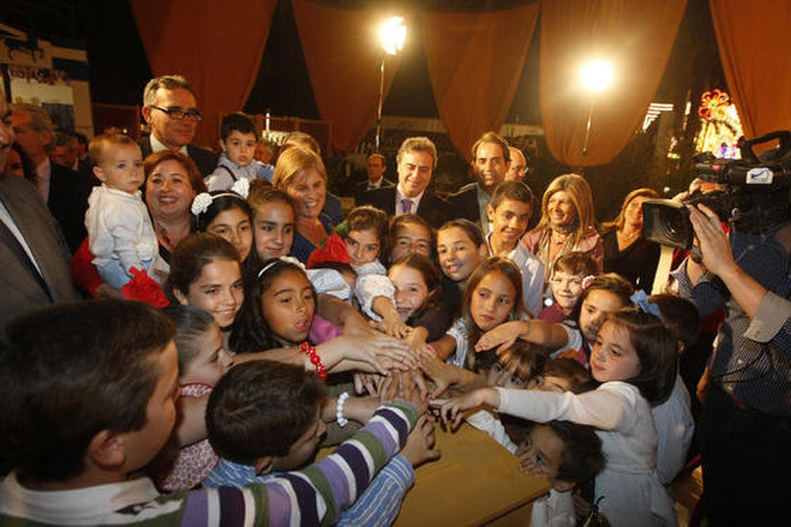 Miles de personas llenaban ayer el parque González Hontoria para disfrutar de uno de los momentos más esperados: el encendido del alumbrado. Pese a que este fin de semana ya funcionó parte del alumbrado, lo cierto es que no fue hasta anoche cuando oficialmente se dio el pistoletazo de salida a la Feria del Caballo 2013. Como es habitual, fue la alcaldesa, María José García-Pelayo la encargada de apretar el botón rojo con el que se activa la iluminación. Lo hizo acompañada por su equipo de gobierno, rodeada de multitud de niños y dentro de un amplio dispositivo de seguridad formado por Policía Local y Nacional. Tras el encendido, una sonriente García-Pelayo aseguró que esta edición de la Feria del Caballo "se presenta bien, hemos empezado muy bien. Una Feria en la que el alumbrado lo han hecho los niños de Jerez, que no solamente son el presente sino también el futuro de la ciudad". "Creo que es bueno -añadió- que sientan la importancia de las fiestas y que participen en ellas, por lo tanto, los niños han sido los grandes protagonistas".