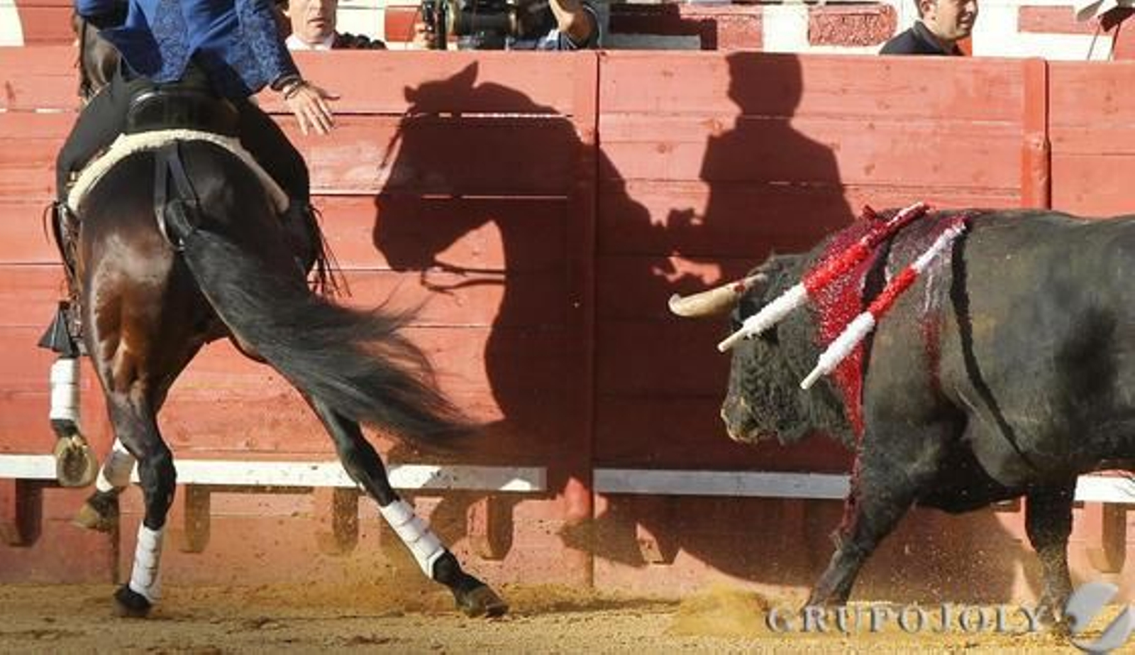 Ahí estaban los toreros: los rejoneadores, los banderilleros y hasta los caballerangos. Todos se tiraron al ruedo para evitar la segura cornada a un caballo. Todos se jugaron la vida, unos con el capote intentando recortar, otros haciendo cites a cuerpo limpio, otros cruzándose en la persecución y hasta hubo un banderillero que coleó al toro. ¡Un toro de salida!, un murube de Fuenterrey recién salido de chiqueros, en toda su pujanza.