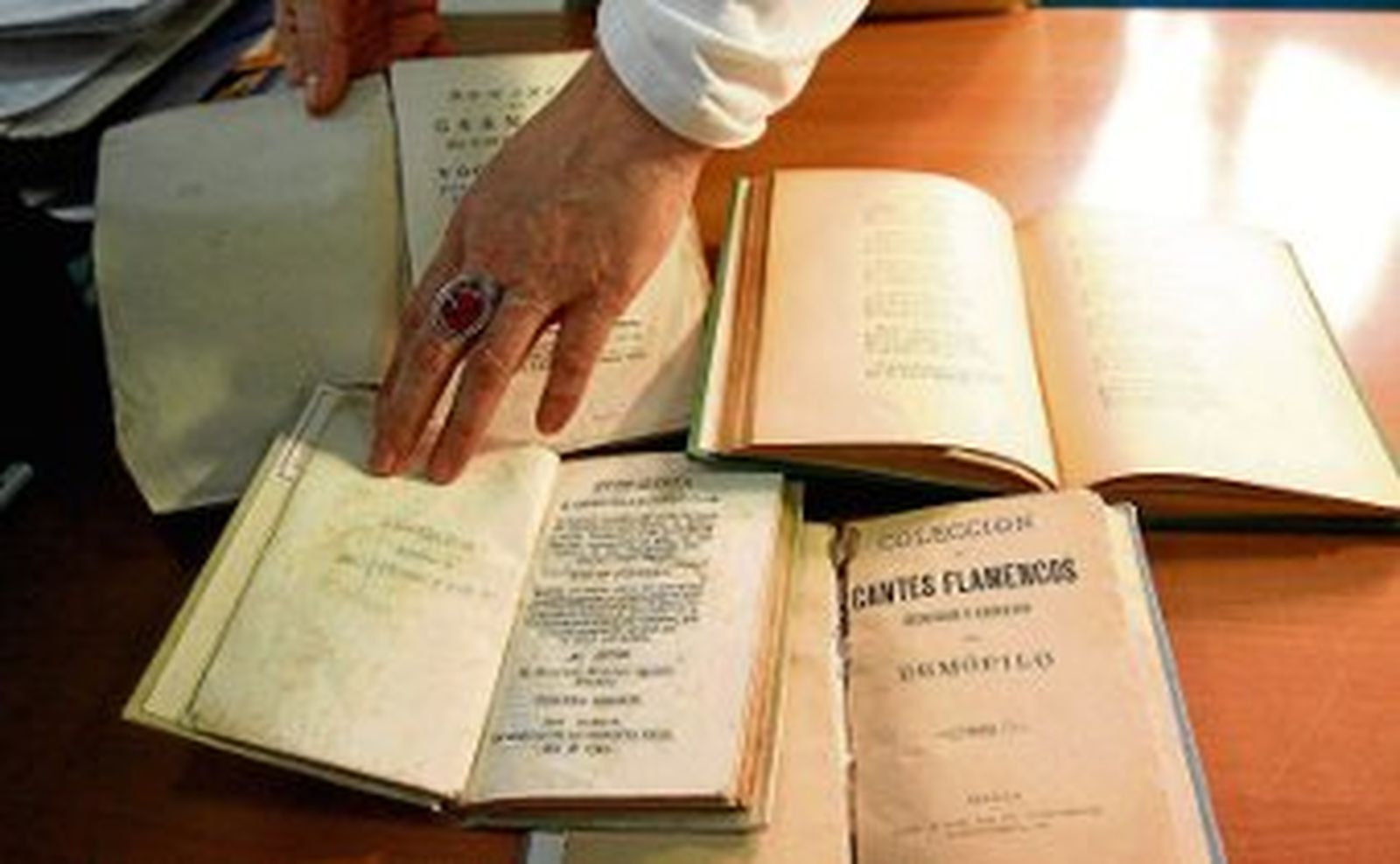 Respecto a la literatura, el CAF tiene toda la que ha generado el flamenco a lo largo de su historia. El libro fundamental, aunque no el más antiguo, es la 'Colección de cantes flamencos de Demófilo' (Antonio Machado y Álvarez), una de las primeras personas que estudió el flamenco como una ciencia. Es una recopilación de cantes, asesorado por el cantaor de Jerez Juanele, que data de 1881 y es el original. "Es, digamos, el origen de la flamencología. Antes de eso hubo escritores románticos y costumbristas que describían fiestas y cuadros flamencos, pero el primer libro en sí es el de Demófilo", anota Ana. En la biblioteca también hay otras joyas como el original de 'La crotalogía o ciencia de las castañuelas' (1792); una colección de libros sobre gitanos y sus costumbres, y sobre Andalucía como territorio donde se desarrolla el flamenco. Además, el CAF tiene una colección de unas 2.400 partituras, que no ha sido fácil conseguir ya que el flamenco no se escribía entonces así.