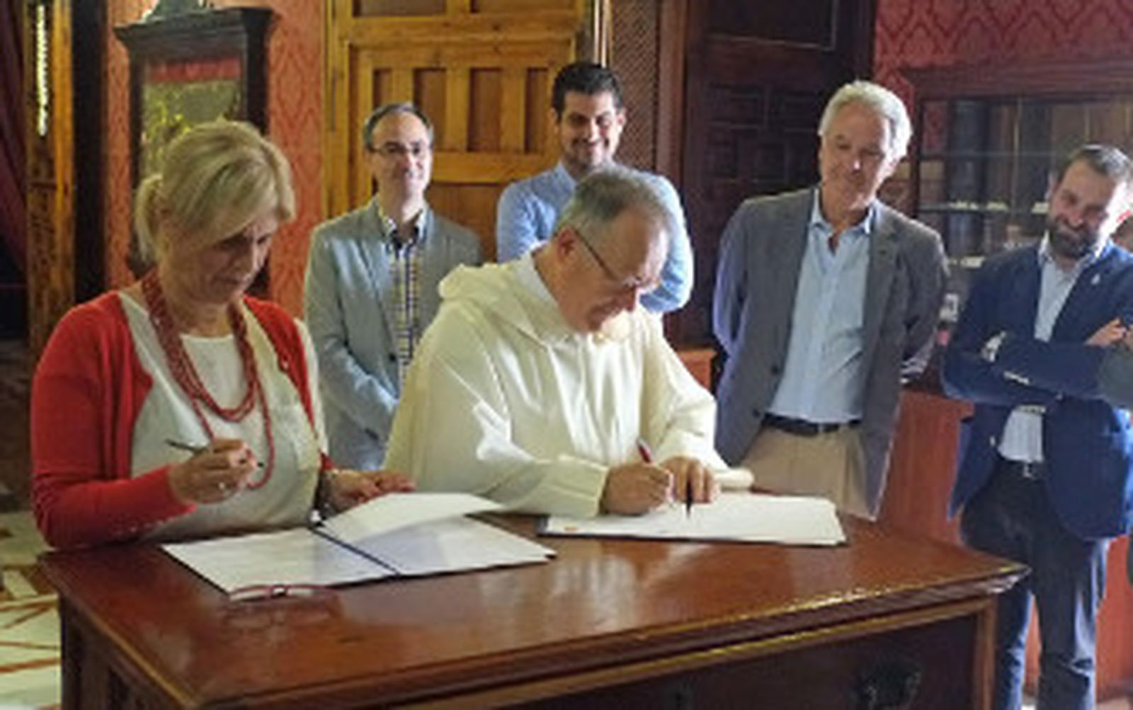 La alcaldesa, María José García-Pelayo, y el comendador de la Orden mercedaria, Felipe Ortuno, suscribieron ayer un convenio por el que el consistorio subvenciona las obras de rehabilitación de la fachada de la basílica cuyo precario estado precisa de una urgente intervención. El acto, cuya convocatoria coincidía con la festividad del fundador de la Orden San Pedro Nolasco, tuvo lugar en la sacristía templo con la presencia de los integrantes de la plataforma creada para la restauración de la casa de la Patrona de Jerez, el delegado municipal de Urbanismo, Agustín Muñoz, y el concejal de Eventos Culturales, Antonio Montero.
