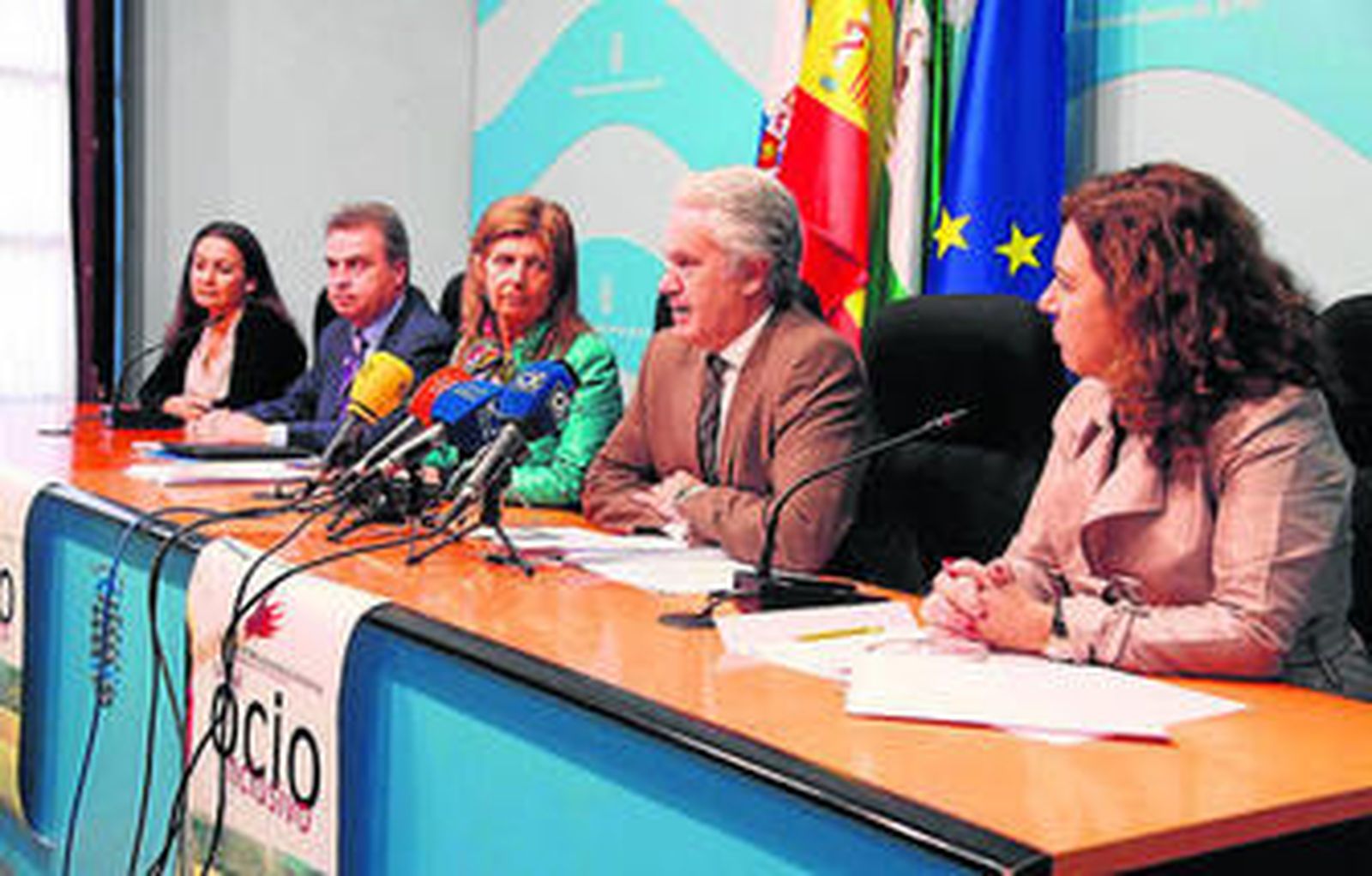 La delegada de Bienestar Social, Igualdad y Salud, Isabel Paredes, acompañada de los delegados de Cultura y Fiestas, Antonio del Real; Urbanismo y Movilidad, Agustín Muñoz; la directora del Teatro Villamarta, Isamay Benavente, y la relaciones públicas de la Yeguada Hierro del Bocado, Patricia Sibajas, presentó ayer el ciclo de actos en torno al Día Mundial de las Personas con Discapacidad, que este año centra su campaña en el 'ocio inclusivo'.