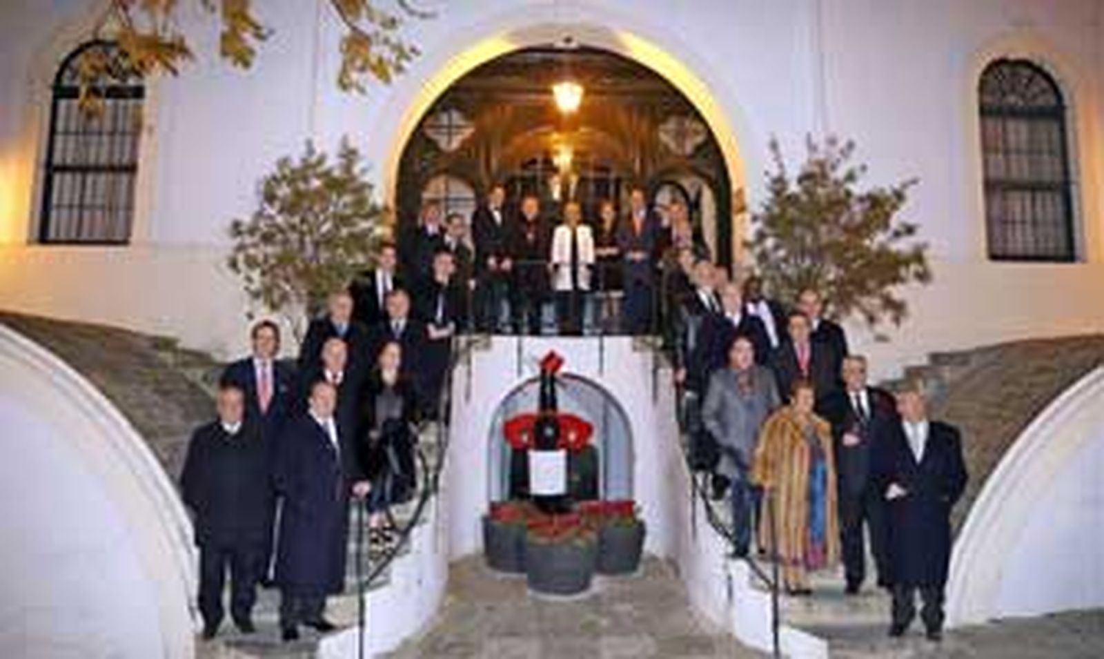 La bodega González Byass acogió anoche la XXVI Cena de la Asociación de los Reyes Magos de Jerez, que este año encarnan David Fernández (Melchor); Elena Aguilar (Gaspar) y Juan Miguel de la Flor (Baltasar). Más de 500 personas –récord de participación– acudieron a una velada mágica, entre ellas decenas de ‘reyes’ que participaron en la foto para el recuerdo que ya es un clásico, en la escalera que lleva el nombre de Sus Majestades y que da acceso a Los Apóstoles. La cena benéfica estuvo presidida por los mejores vinos de la casa. Comenzó en La Concha con los aperitivos, y se sirvió en Los Apóstoles con el sello de Alfonso Catering. Tras los discursos de Elena Aguilar y la alcaldesa, María José García-Pelayo, a continuación Los Robledos amenizaron la noche con un concierto inolvidable.