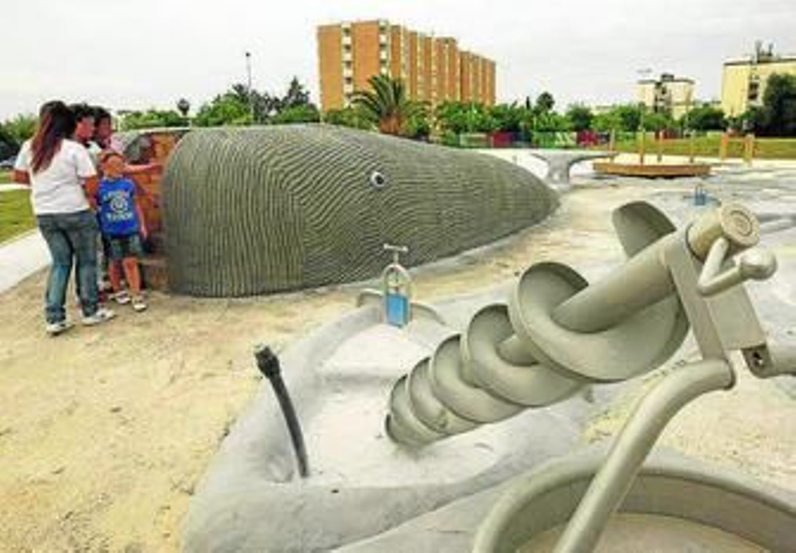 Este inmenso parque, en el que además de los niños tienen cabida los mayores, cuenta con todo lo necesario para el disfrute al aire libre. Lo primero que se puede encontrar es un pequeño anfiteatro, donde se representarán obras de teatro, títeres y cuenta cuentos. A esto le siguen grandes toboganes, mini campos de fútbol y baloncesto, dos tirolinas, una pista de patinaje, un pueblecito infantil, una pirámide de red, dos saltadores y otros juegos de movimiento y arena, así como una zona musical, con diversos xilófonos, y otra acuática, ésta todavía a falta de algunos retoques. A todo ello se le une un merendero, un espacio para cuenta cuentos, un bar-restaurante, una cafetería y aseos, aún no abiertos al público, aunque ya están listos.