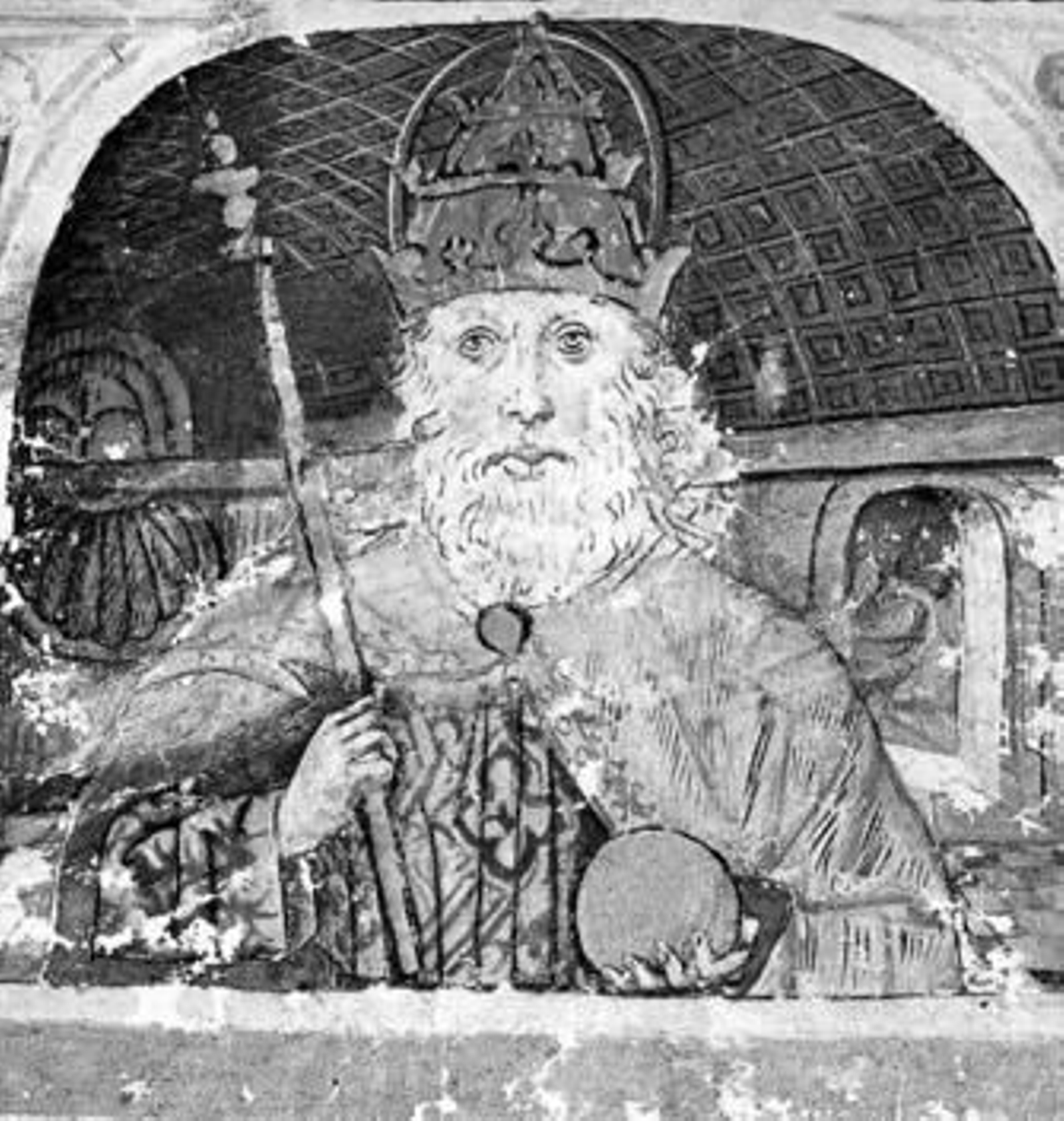 Representación del rey Alfonso X el Sabio, en un códice de la Biblioteca Nacional de Madrid de la Primera Crónica General de España