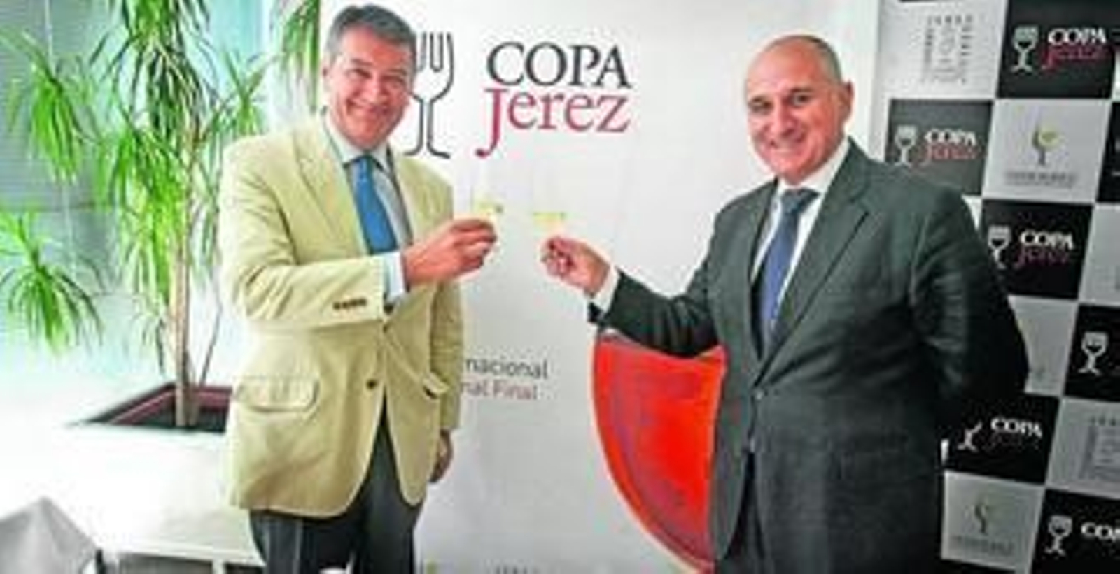 César Saldaña, director general de los Consejos del vino y del brandy, y Francisco Romero, presidente del Grupo Romero Caballero, presentaron ayer la fase final de la cuarta edición de Copa Jerez, certamen gastronómico internacional de maridajes con vino de Jerez.