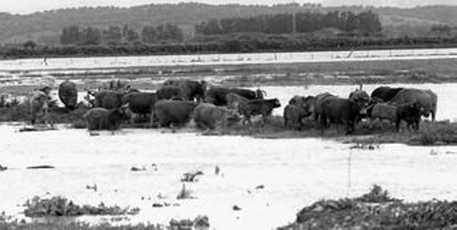 La ganadería vacuna está atravesando un momento duro y los ganaderos, ante la imposibilidad de que los animales pasten a su libre albedrío porque todo está inundado, se ven obligados a dar pienso a las bestias, con un incremento de coste que ronda los dos euros por vaca y día. A este hecho hay que sumar los problemas logísticos que encuentran los propietarios para acceder a una ganadería que vive en extensivo, al aire libre y, por tanto, a veces están en zonas a las que es imposible acceder porque se han quedado sitiadas con las lluvias. Cada día es una aventura para estos ganaderos que se afanan en cuidar a sus reses y se ven impotentes porque no pueden ni acercarse a ellas. Al problema de la comida se añade que no están "saliendo a celo", es decir, que no están acercándose a los machos para aparearse porque, según los camperos, el tiempo no acompaña a este tipo de actividades y les quita las ganas de relacionarse con el sexo opuesto, con la que está cayendo. Por supuesto, se están registrando bajas en las crías porque nacen en pleno temporal y se ahogan, en adultos por enfermedades y ahogamientos tras quedarse atrapados en el barro, ...