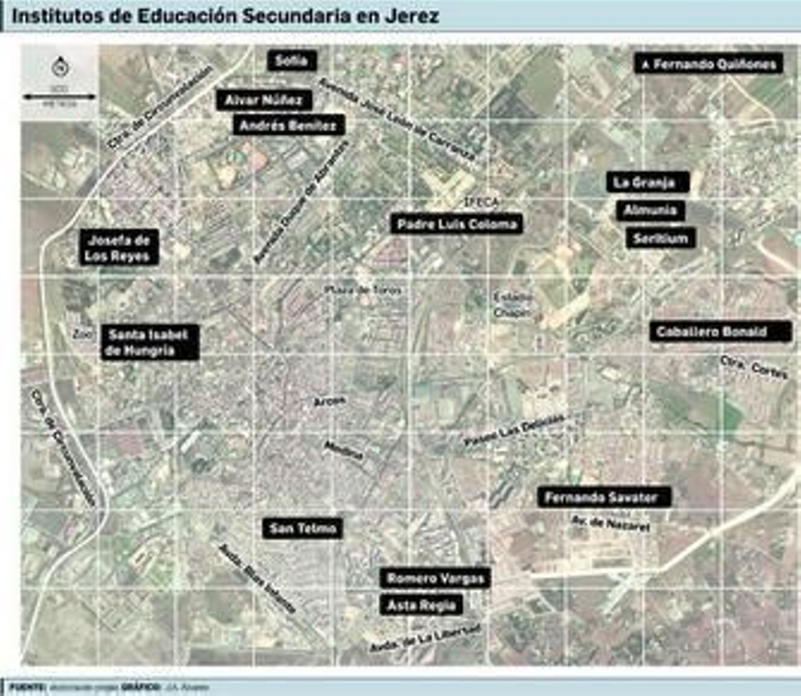 Pero volviendo a los IES, si repasamos el mapa educativo y de centros existente en Jerez comprobamos que hay zonas en las que pese a haber crecido en cuanto a número de habitantes en los últimos años, como puede ser la zona de Hipercor o La Marquesa, no se ha invertido en infraestructura necesaria. De igual forma, si echamos una ojeada al mapa de institutos de la ciudad, resulta curioso que toda la zona centro, es decir, próxima al IES Coloma tenga un vacío importante de instalaciones a pesar de englobar a a un buen número de alumnos.