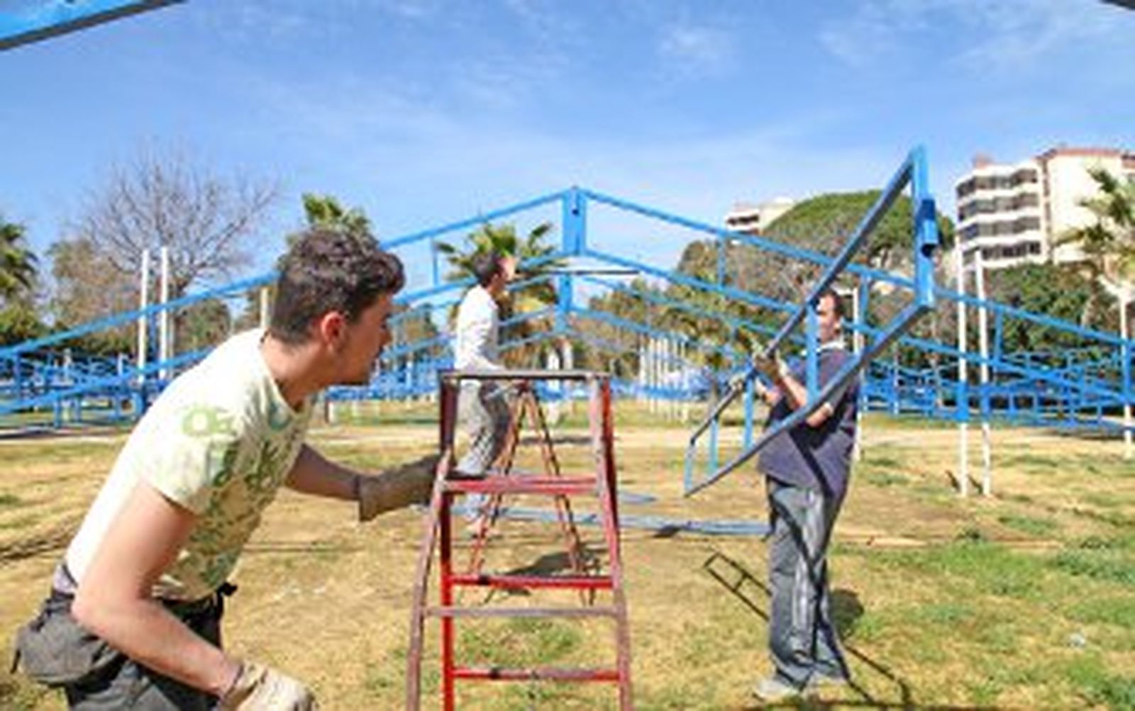 Mientas tanto en el González Hontoria ya puede verse la mayor parte de las estructuras montadas, tras un par de semana de trabajo de la empresa Los Puitos.