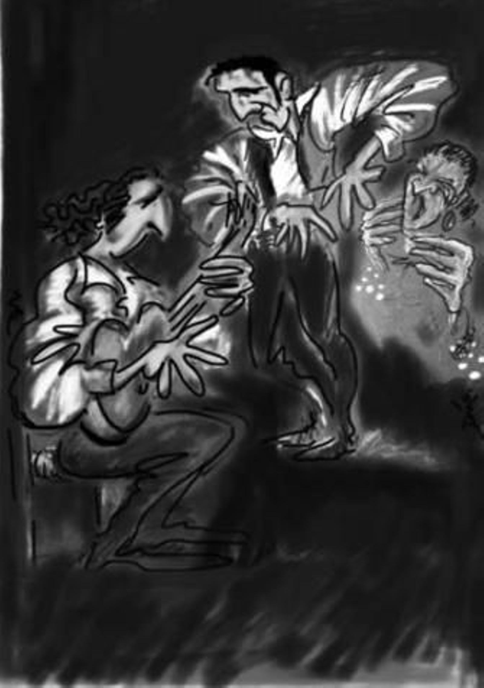 Hemos tenido ocasión de diseñar la imagen (cartelería y dípticos) para el evento. Todo empezó como una especie de homenaje a Edvard Munch.Si su expresividad puede resumirse en un Grito, el Flamenco bien podría estar representado en el 'Quejío'. Cantar con los lápices, bailar con el color, tocar con las manos y enseñar con la garganta. Versatilidad creativa (encargo después de la imagen para unas Jornadas de Matemáticas), pero "hay que tocar todos los palos". Primero dibujando a mano y luego tocando con dispositivos electrónicos, ponemos la tecnología al servicio de la comunicación. Como preámbulo de un compendio de artes vivas, "el Flamenco coge tablas en la Escuela".