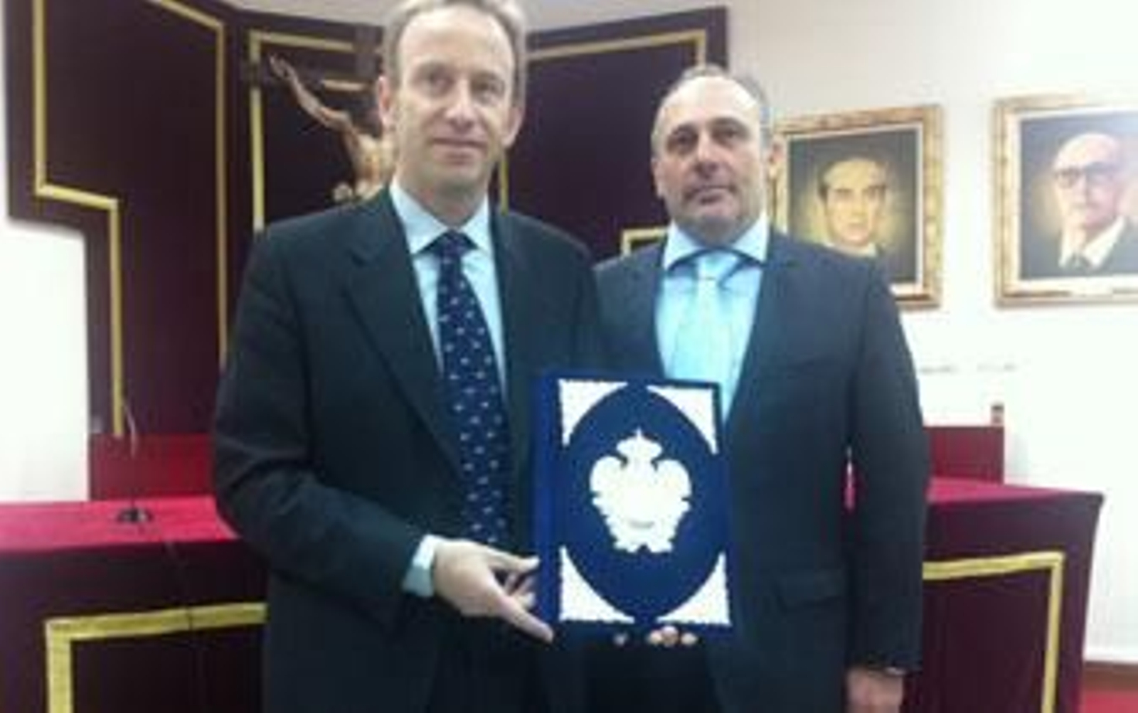 Fue un acto sencillo, sin grandes protocolos, casi íntimo. El consejo de la Unión de Hermandades le entregó a Ignacio García Pomar las artísticas pastas que darán cobertura a lo que ha preparado para anunciar la Semana Santa el próximo domingo en el Teatro Villamarta.