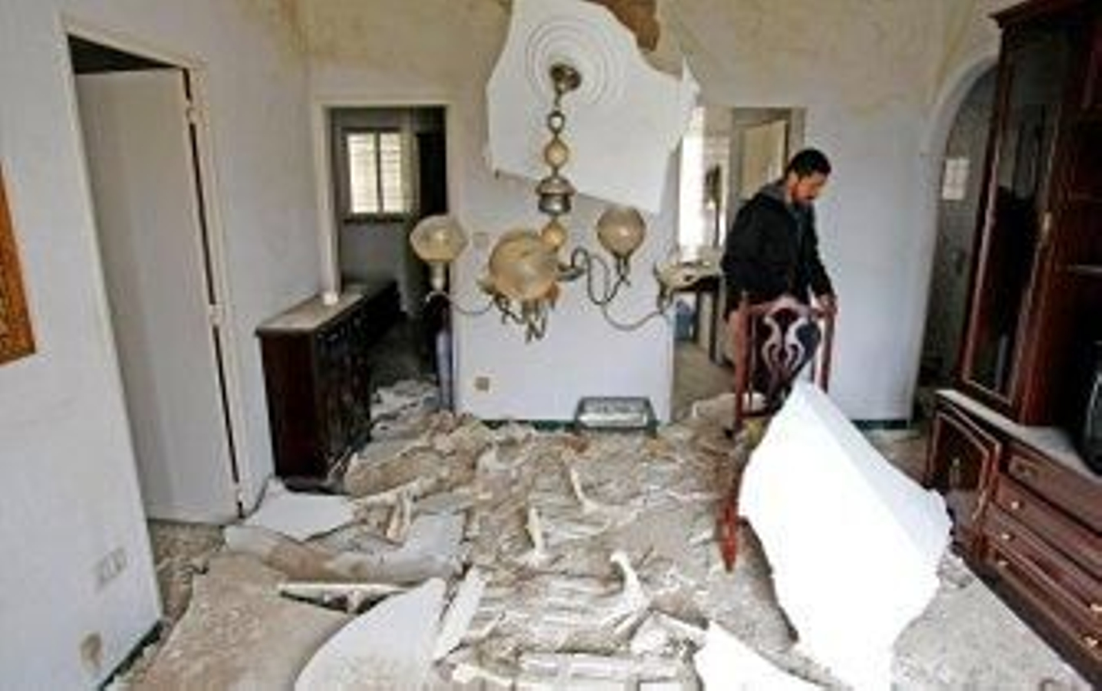 El suelo del salón y del cuarto de baño de la vivienda aparecía ayer lleno de cascotes del techo de escayola, que dejaba al descubierto el estado preocupante de una de las vigas. Aunque en un principio, los vecinos del bloque, donde viven seis familias, barajaban la posibilidad incluso de que tuviesen que desalojar el edificio, finalmente los técnicos de Urbanismo que acudieron a revisar el estado del inmueble, junto con agentes de la Policía Local, decidieron que era suficiente con apuntalar el techo de la vivienda, aunque se tendrán que hacer inspecciones periódicas para determinar si es necesario apuntalar también las tres viviendas de los pisos inferiores.