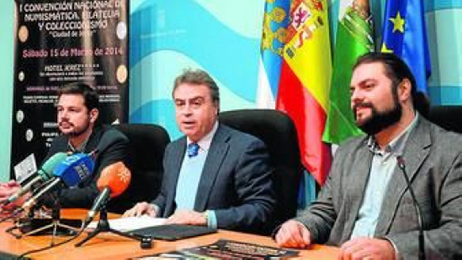 El delegado de Turismo, Cultura y Fiestas, Antonio Real, junto al director y gerente de Pulifil, Rubén Pulido, y el director de Marketing de Pulifil, Germán Sánchez, presentó ayer la I Convención Nacional de Numismática, Filatelia y Coleccionismo, que se celebrará el próximo 15 de marzo, a partir de las 9 horas, en el Hotel Jerez.