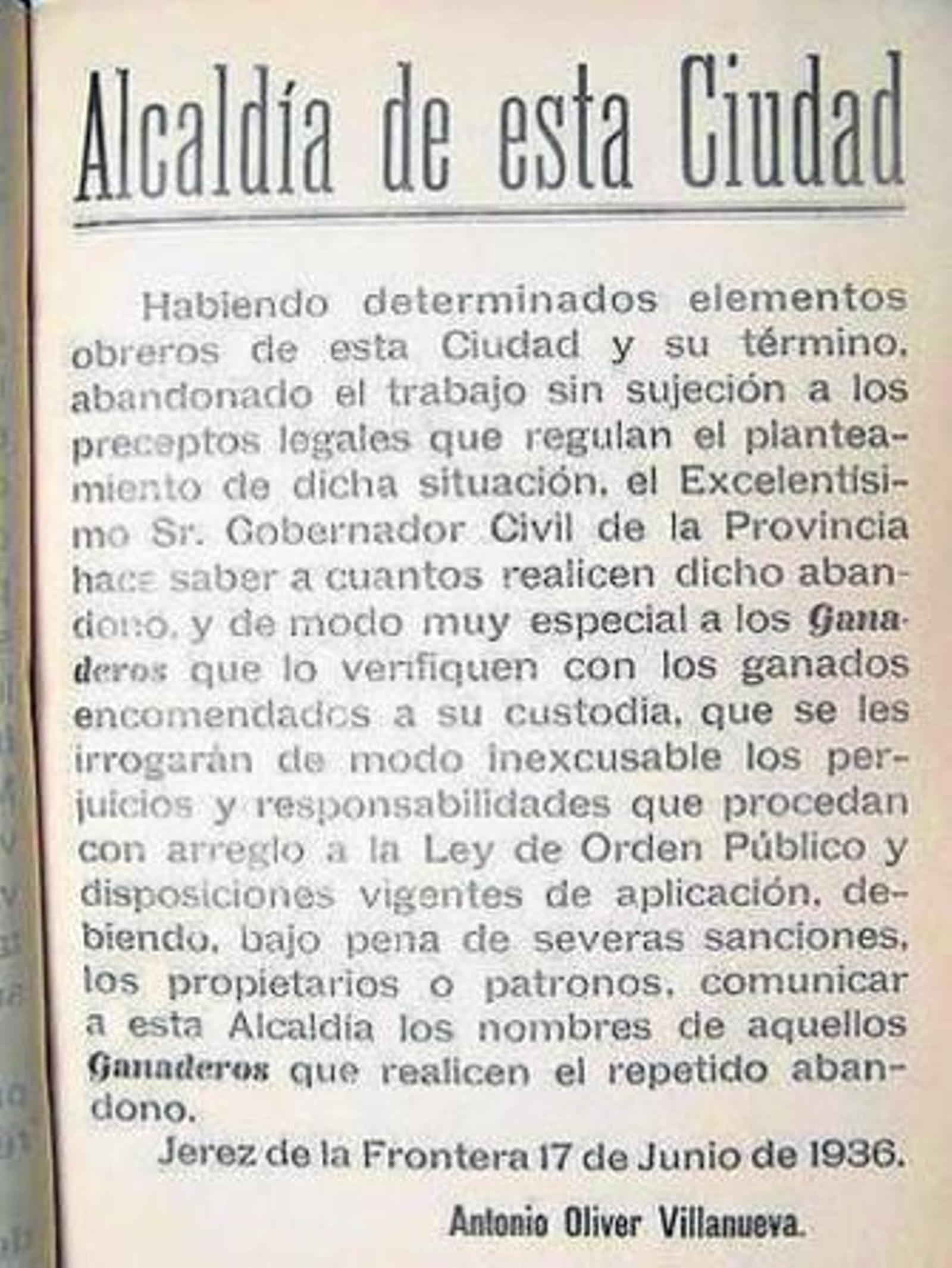 Jerez rozó el caos en mayo de 1936 y ese panorama hizo ganar apoyos a las fuerzas reaccionarias. La estrecha vinculación de José Antonio Primo de Rivera con la ciudad, le hizo ganar muchos adeptos. Además, "los ayuntamientos tuvieron escasa capacidad de maniobra. No sólo no tenían recursos, sino que dependientes políticamente de los gobiernos civiles (la Administración central) y encima enfrentado a una prensa hostil y a un espacio ciudadano radicalizado de una u otra parte y falto de sentimiento ciudadano y democrático. Pese a que no fueron políticos profesionalizados lo hicieron lo mejor que pudieron, pero está claro que la República cayó entre otras cosas por la falta de un espacio político local fuerte", subraya el investigador.