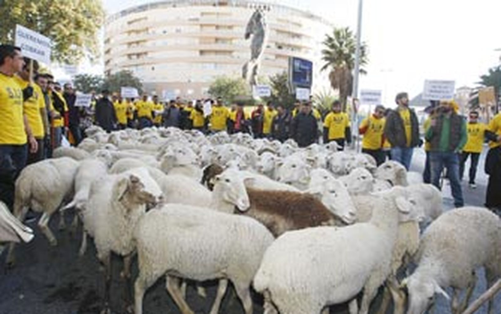 El Sindicato Independiente de la Policía Local (SIP) montó ayer una de sus habituales ‘perfomances’ y condujo un rebaño de unas cincuenta ovejas desde la rotonda número 4 de la avenida Juan Carlos I hasta la plaza de Madre de Dios ante las atónitas y perplejas miradas de decenas de ciudadanos que (en líneas generales) se tomaron con humor la insólita manifestación, salvo en el último punto al cortarse la circulación.Los policías ‘pastores’ clamaban “no somos borregos, somos personas. Tenemos que pagar nuestras hipotecas y recibos como cualquier otro ciudadano. No podemos ser manipulados por los políticos a su antojo”. A la plantilla del 092 (como al resto de los trabajdores municipales) el Consistorio les adeuda la paga extraordinaria de Navidad, la nómina de enero y aún no ha terminado de abonar la totalidad de la de diciembre, tras realizar dos ingresos parciales de 325 y 800 euros. “Pelayo paga ya”, fue el cántico entonado reiteradamente durante toda la manifestación.