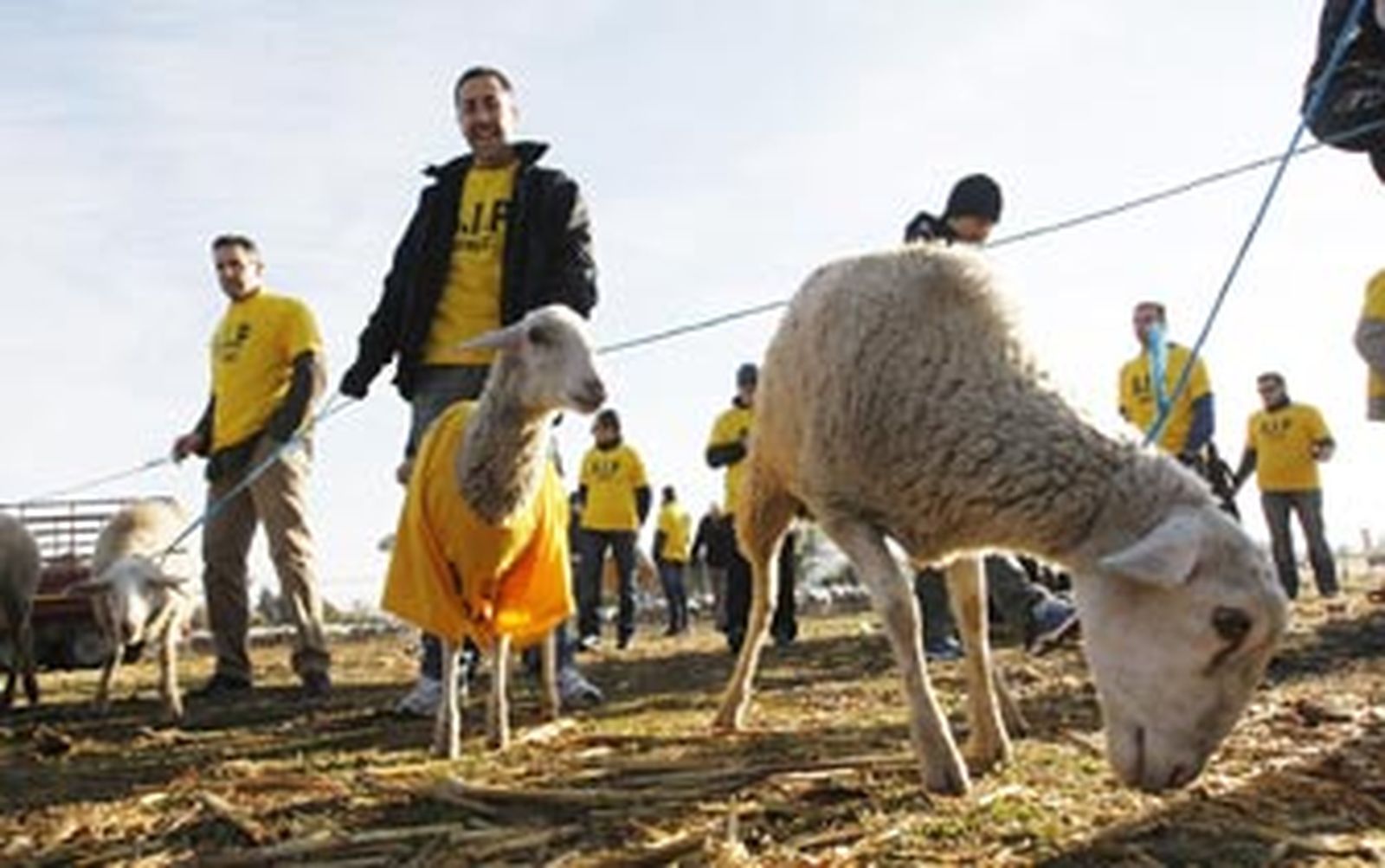 Policías locales conducen un rebaño de ovejas porque "no somos borregos"