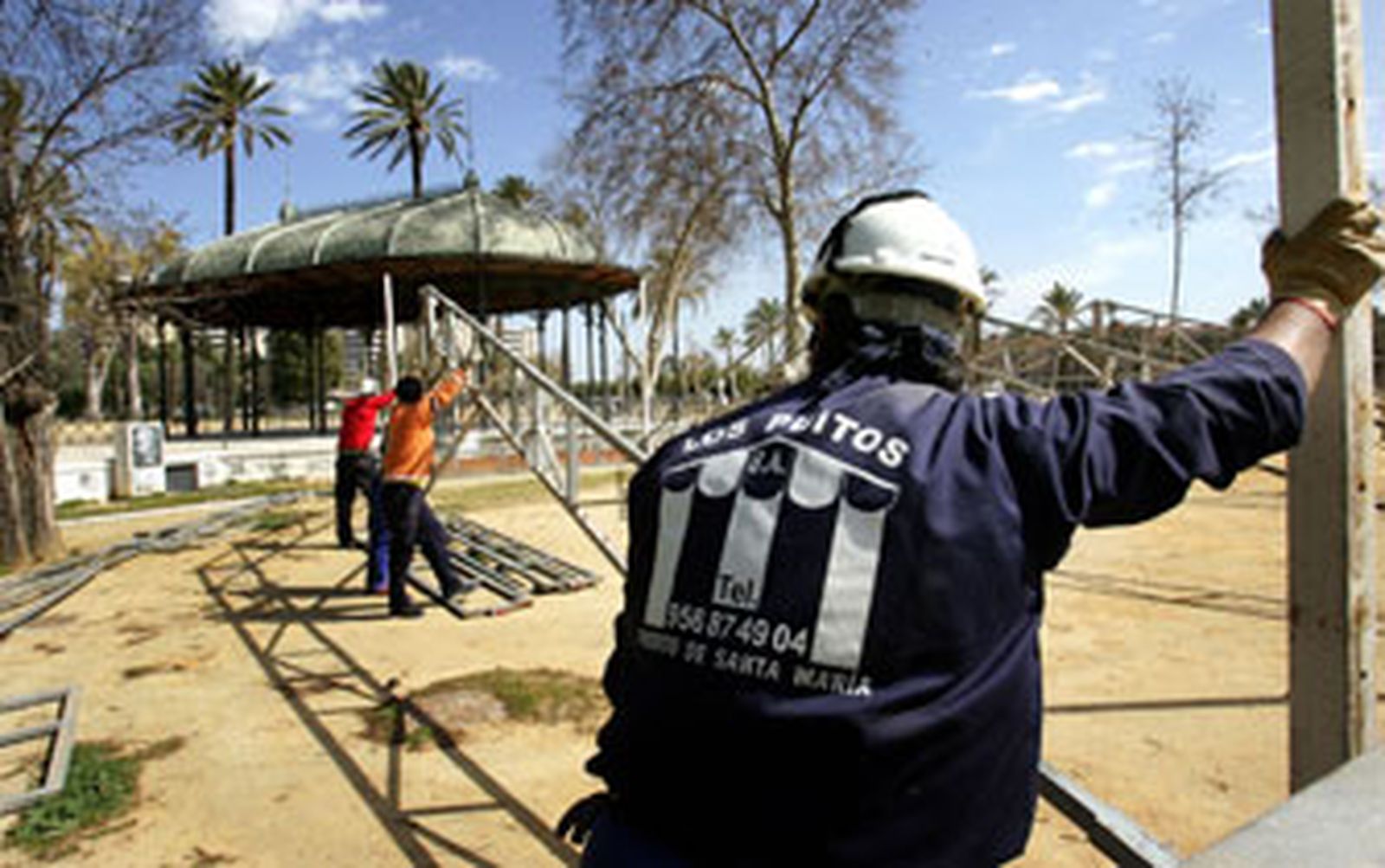 La enorme deuda que mantiene el Ayuntamiento de Jerez con esta conocida compañía suministradora de material para ferias no ha sido óbice para que las tareas de montaje hayan comenzado con tiempo suficiente, no en vano la Feria del Caballo se celebrará entre los domingos 8 y 15 de mayo.
