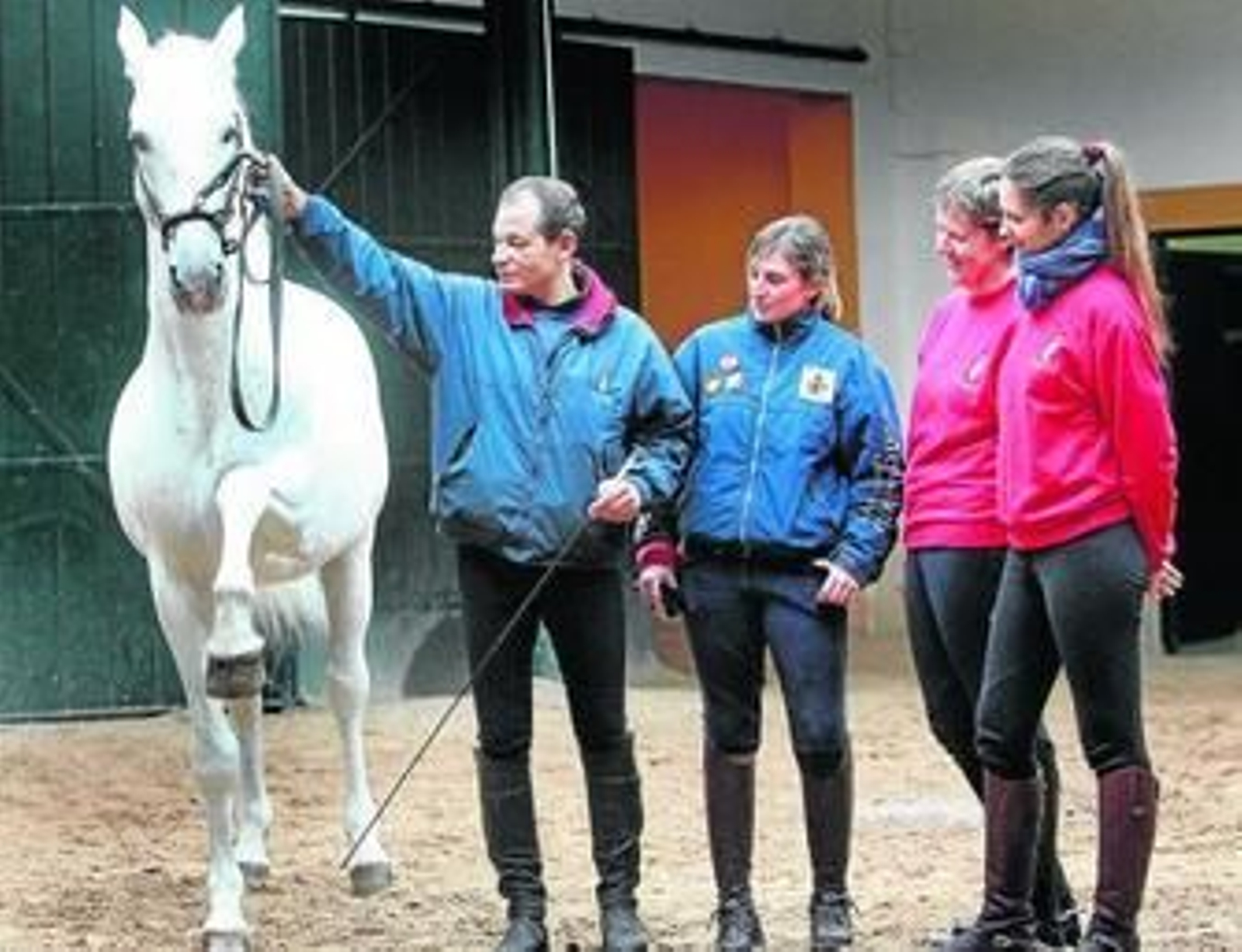 Las jornadas en la escuela son muy completas. Comienzan temprano, a las ocho de la mañana, y se prolongan hasta las dos de la tarde. Se alternan clases teóricas con prácticas en las que se hace trabajo a la cuerda, a la mano, doma vaquera, cambios de pié, 'piaffer' y 'passage', entre otras actividades en las que también se incluye el manejo de enganches. "Es un curso muy bien programado y muy divertido en el que todo el mundo lo pasa muy bien y que les ayuda a sentir cosas que normalmente no pueden sentir con otros caballos tan preparados como los de aquí".