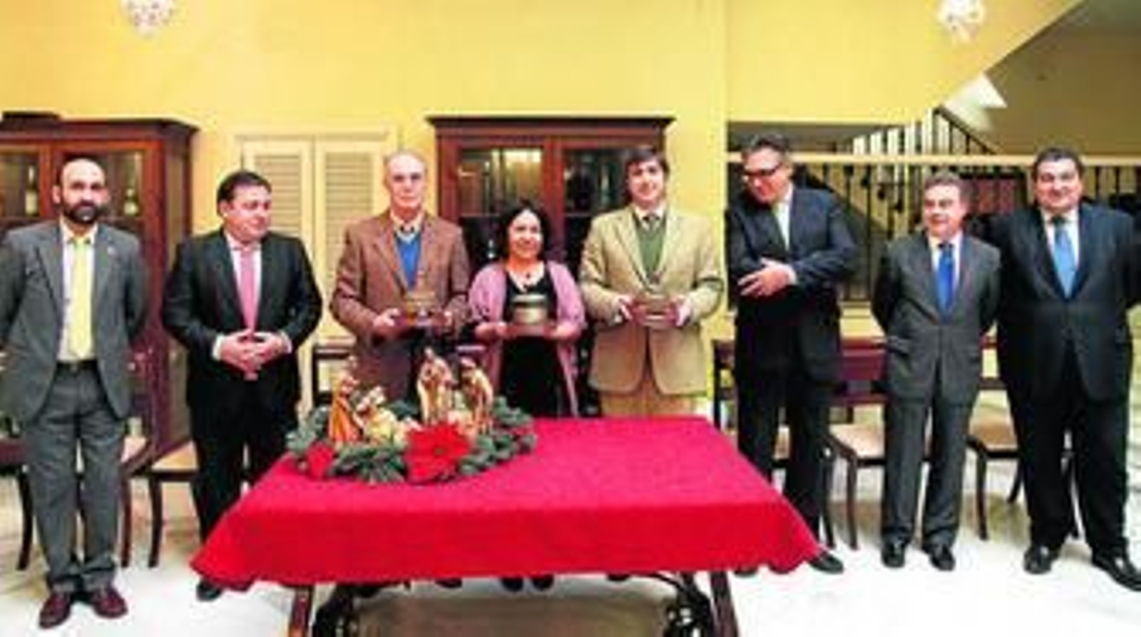 El teniente de alcalde Javier Durá, el delegado de Turismo, Cultura y Fiestas, Antonio Real; y el concejal responsable del Plan Especial de Promociones Culturales, Antonio Montero, presidieron ayer el acto de entrega de los cofres a sus Majestades los Reyes Magos de Oriente en la Bodega Cardenal Mendoza, de Sánchez Romate.