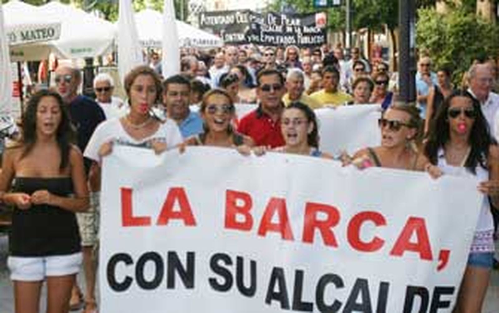El alcalde de La Barca, Roque Valenzuela, fue ayer hospitalizado horas antes de cumplir el duodécimo día de huelga de hambre debido al delicado estado de salud que presentaba. El ingreso coincidió con la protesta que protagonizaron cerca de 150 vecinos y trabajadores de La Barca que llegaron en autobuses pagados por los empresarios de la pedanía y que recorrieron el centro de Jerez para reclamar la deuda que el Ayuntamiento matriz mantiene con el pedáneo. José Antonio Valenzuela, portavoz municipal de la pedanía, aseguró ayer que el Ayuntamiento de La Barca sólo ha recibido hasta el momento "pagos de 30.000 y 20.000 euros, pero es insuficiente porque Sevillana exige 55.000 euros para dar luz a la Feria y la Feria tiene un mínimo de gasto de 66.000 euros, por lo que después de 70 años éste sería el primero que no podremos hacerla si no recibimos el dinero. Además los trabajadores municipales no han cobrado". El portavoz señaló que nadie se ha puesto nuevamente en contacto con el alcalde (que al cierre de este edición continuaba en el hospital y no sabía si tendría que abandonar la huelga o no), aunque "nosotros hemos enviado un burofax a Griñán, a la Casa Real, a Diputación y a Moncloa. De momento, sólo ha llamado una diputada para preguntar, de parte del presidente Zapatero, qué es lo que pasa, y el Defensor del Pueblo".