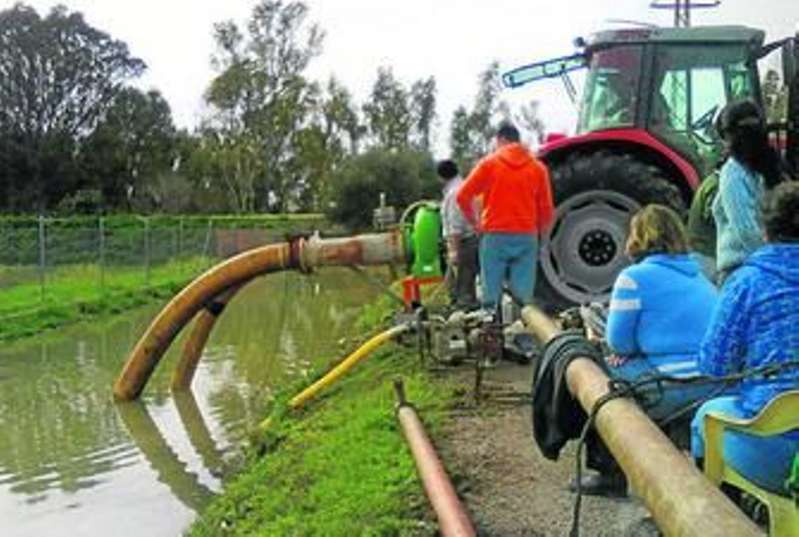 El caso de La Greduela (que se encuentra entre los cerros que la separan de Lomopardo y el río Guadalete) es único por sus características y, realmente, parece que tiene solución. A diferencia de La Ina y Las Pachecas, que son anegadas directamente por el Guadalete, en La Greduela la inundación no viene del río. Cuando el río sube cierran unas compuertas y listo. Cuál es el problema entonces, el agua que baja del monte, que no encuentra salida al río y se acumula en el llano donde se encuentran las viviendas y los cultivos, donde está el desagüe actual.