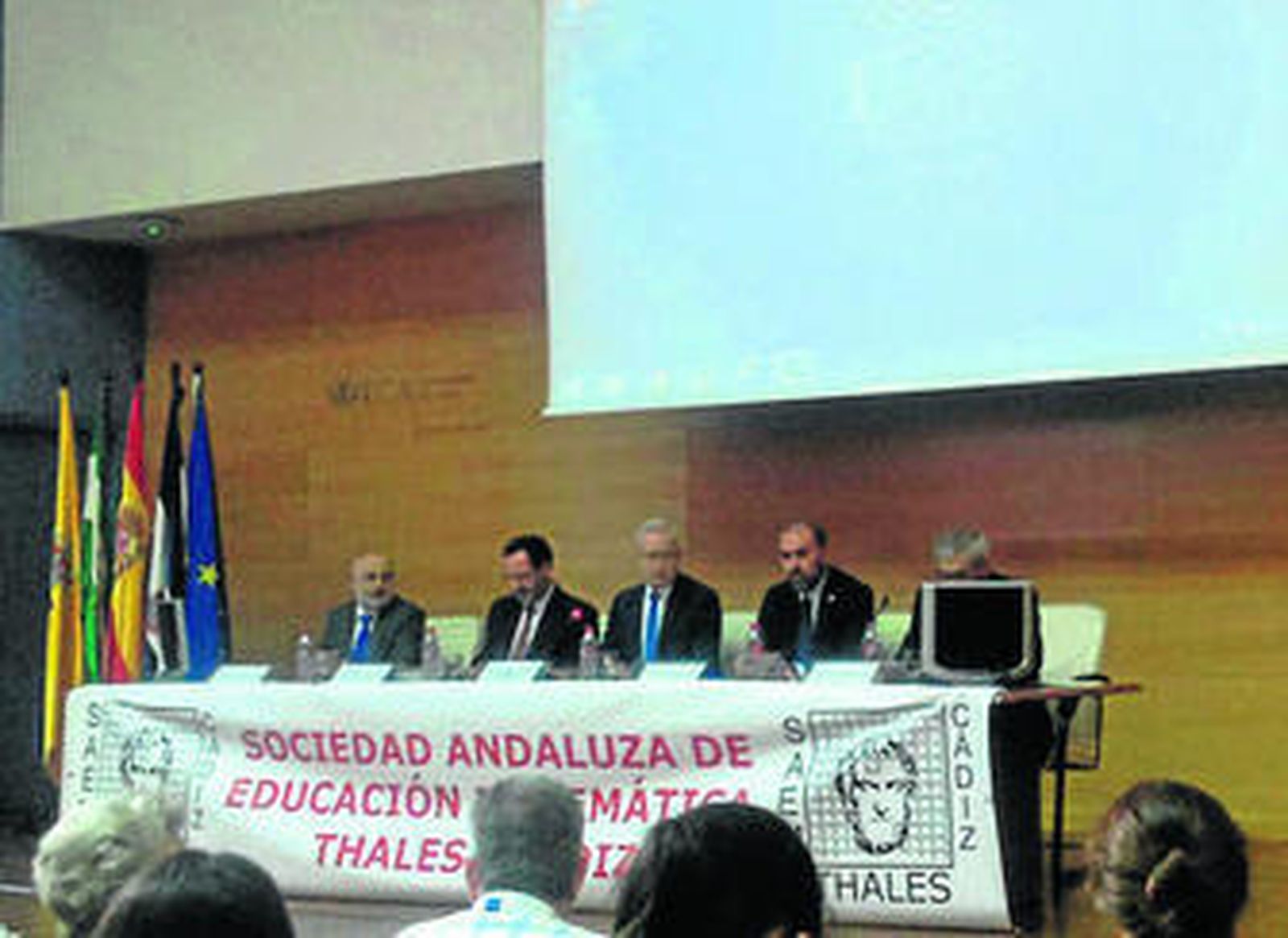 El Campus de Jerez será escenario hasta mañana del XVI Congreso de Enseñanza y Aprendizaje de las Matemáticas que organiza la Sociedad Andaluza de Educación Matemática Thales. La inauguración contó con la presencia del vicerrector de Transferencia e Innovación Tecnológica de la UCA, Javier Pérez, el director General de Innovación de la Consejería de Educación de la Junta de Andalucía, Pedro Benzal, el delegado del área de Servicios Económicos de la Diputación de Cádiz, Jesús Solís, y el presidente de la Sociedad Andaluza de Educación Matemática, Sixto Romero.