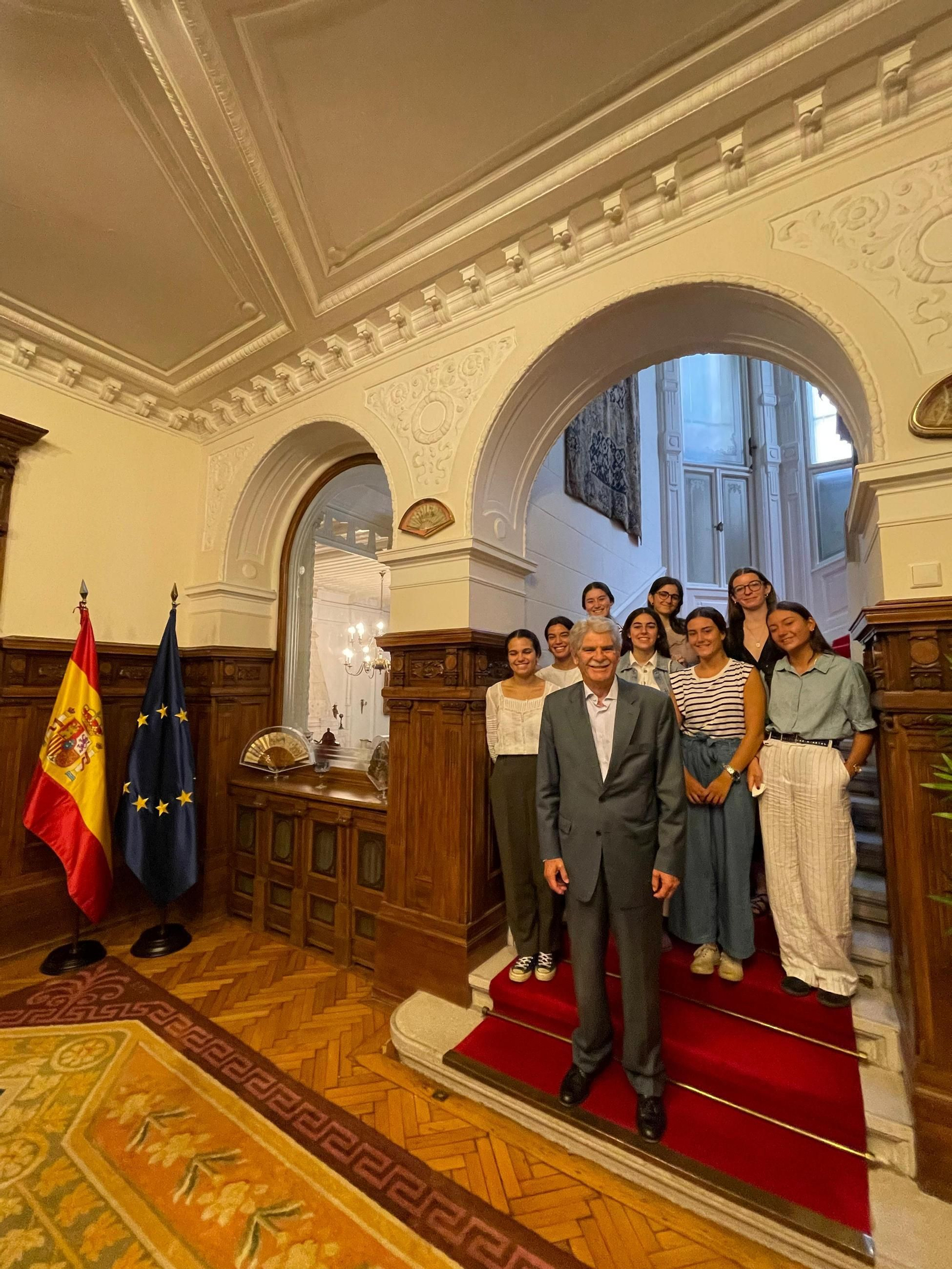 El diplomático jerezano recibe en Budapest a las estudiantes, de viaje por Europa en interrail