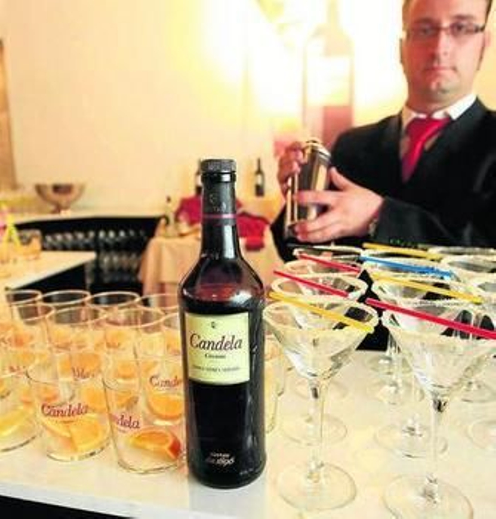 'Candela' cream se elabora a partir de las variedades palomino y pedro ximénez y se somete a una vinificación especial para trasladarle un toque de uva pasificada a medias. "Es un producto rejuvenecido que puede entrar en la mesa, tomarse en o combinarse", explicó Lozano antes de que los asistentes comprobaran por sí mismos las posibilidades de combinación en cuatro cócteles elaborados por la Escuela de Hostelería: el clásico con hielo y rodaja de naranja, mojito, cóctel Candela -con zumo de naranja y Amaretto- y Caps Candela -fruta, champán y Mangaroca-.