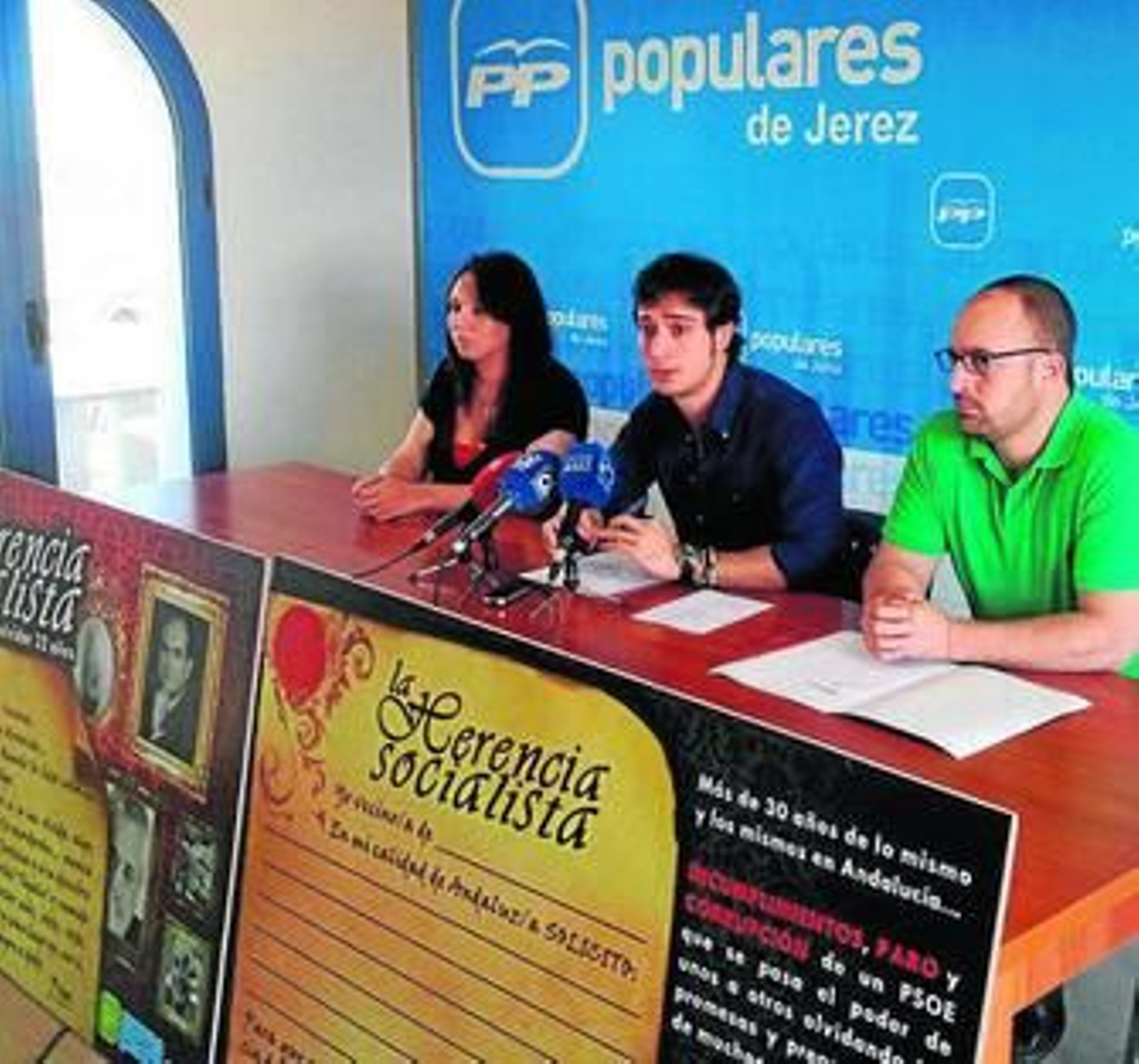 Luis Paniagua, presidente de Nuevas Generaciones de Andalucía, presentó ayer en Jerez una nueva campaña que bajo el lema 'La herencia socialista. 100 días para no olvidar 32 años', en un acto que contó con la presencia de Germán Beardo, presidente provincial, así como la secretaria general de NNGG local, Irene Pérez. La campaña en sí recuerda que Susana Díaz "no significa renovación ni regeneración porque es el perejil de todas la salsas de la corrupción socialista".
