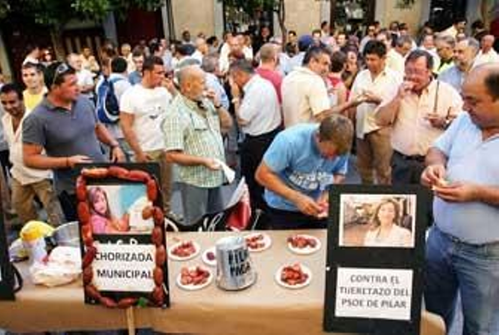 Lo cierto es que la concentración de ayer de la plantilla no fue especialmente la más multitudinaria, pero sí la más original. El acto se abrió tras entrar en 'escena' una especie de estandarte con una imagen de la alcaldesa rodeada de chorizos. Ya lo anunció José García, portavoz de CGT, a finales de julio, "haremos algo más llamativo" y lo consiguieron.