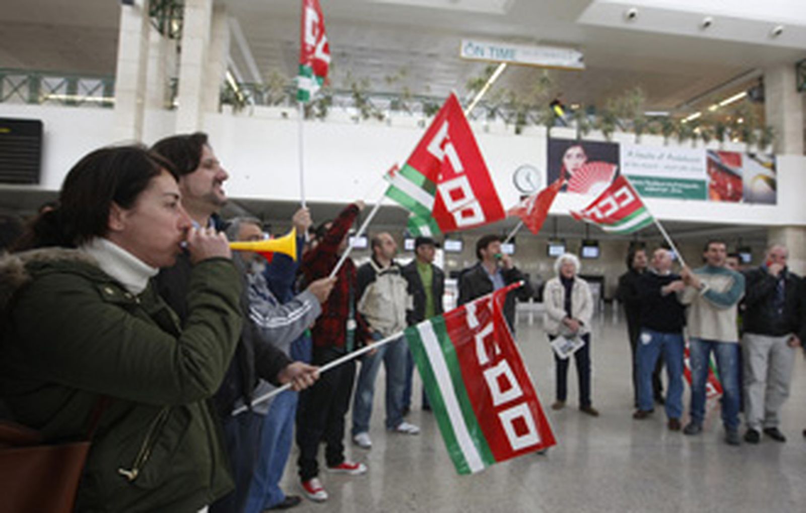 Los empleados secundan al 100% la jornada de paro con unos servicios mínimos del 25% La conexión de las 8,40 horas tuvo que aterrizar en Sevilla por la mala visibilidad