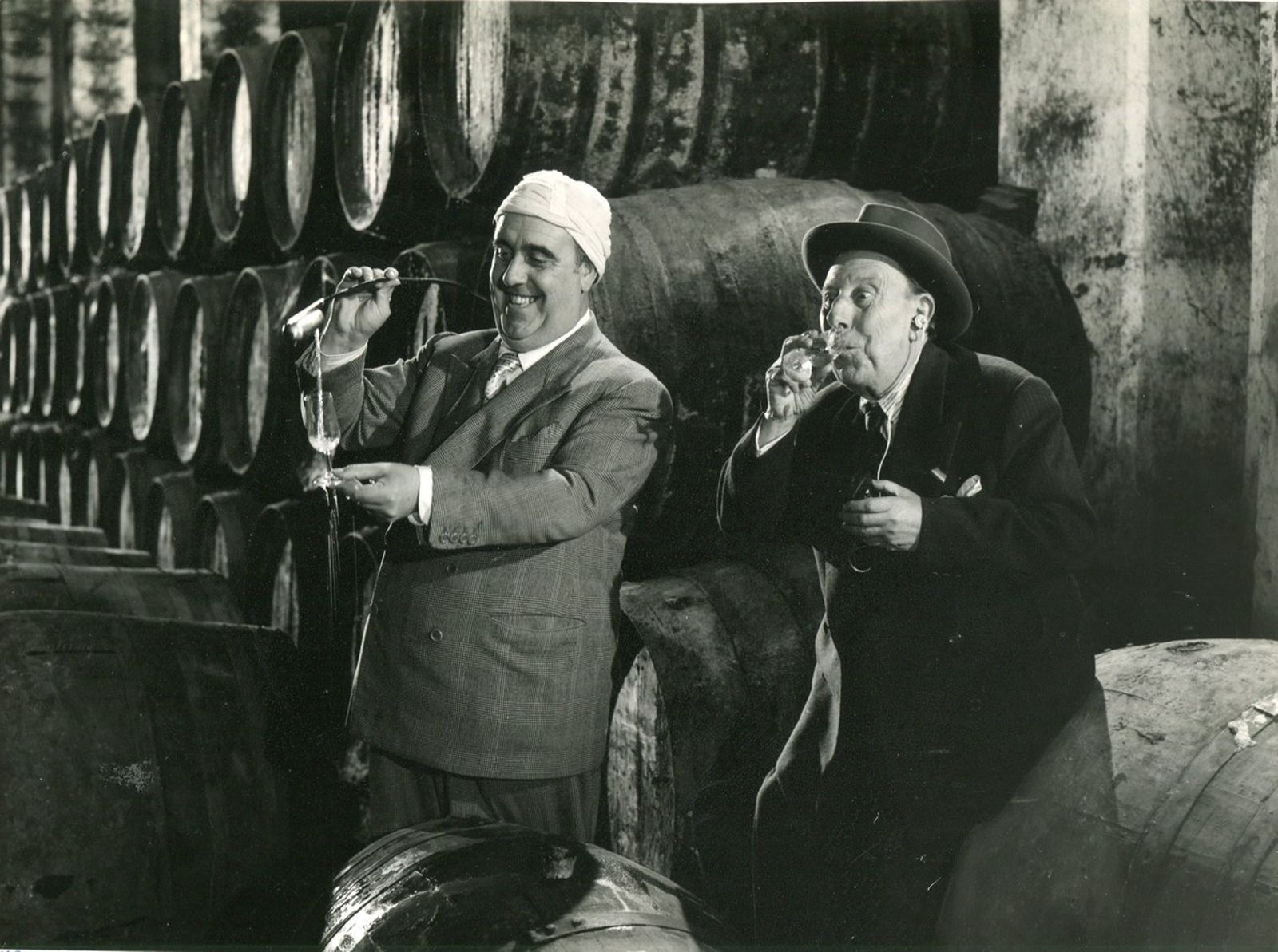 Ese mismo año, el prolífico Benito Perojo -figura clave en esta historia del jerez en el cine español- dirige Mariquilla Terremoto y El barbero de Sevilla. En la primera, dos amigos comparten una media de Jandilla, mientras que en la segunda es la manzanilla la que cobra protagonismo en varias secuencias.