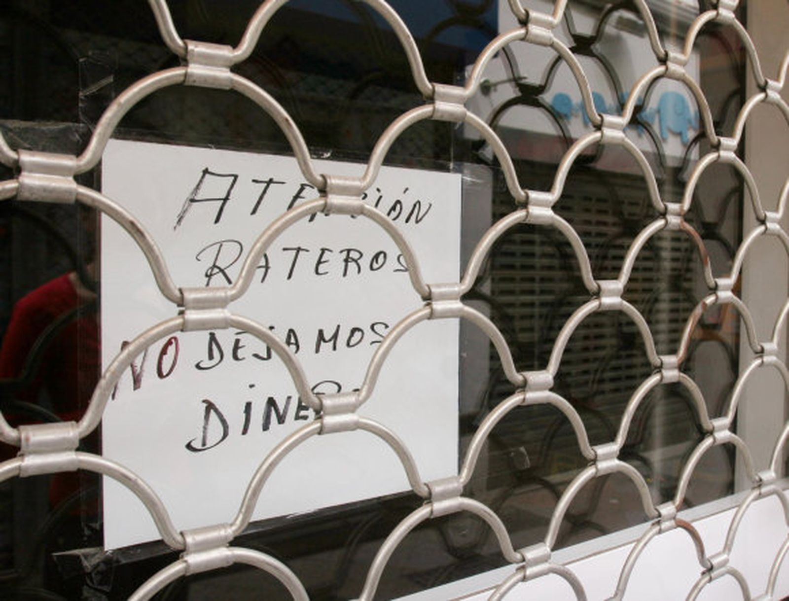 Algunos comerciantes se toman con sentido del humor el día a día y no dudan en dejar mensajes disuasorios a posibles ladrones. Tal como se aprecia en esta imagen de VANESA LOBO, el propietario de este establecimiento ubicado en el centro de la ciudad avisa claramente: "Atención rateros, no dejamos dinero". Aún así, los más cautos optan simplemente por el tradicional sistema de alarmas.