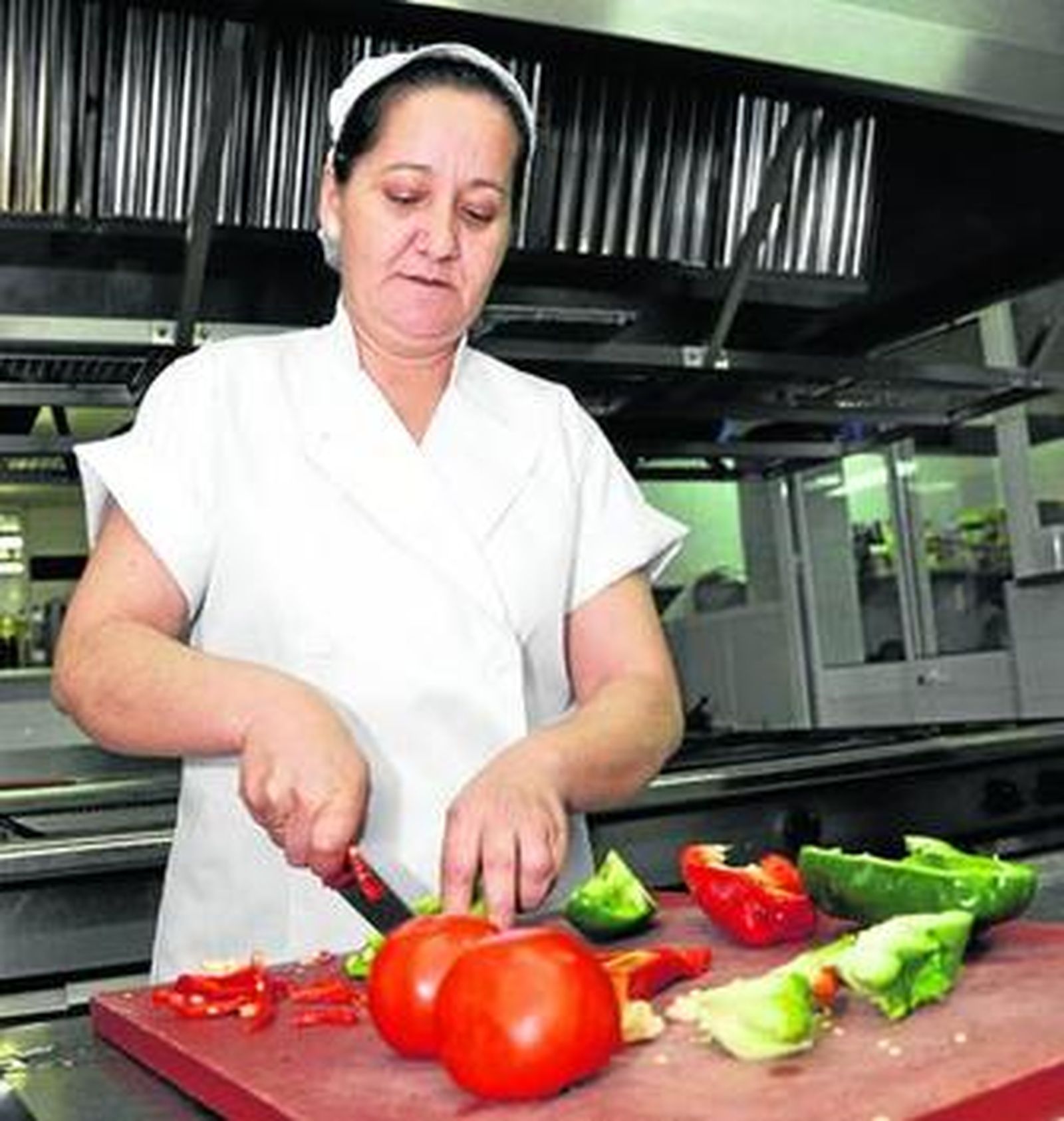 Luis González, jefe de Cocina del Hotel Jerez, echa una mano de vez en cuando en sus labores como alumna a Carmen Fernández, que por ahora está en el departamento de salsero, pescadero y en la zona caliente. El próximo mes estará en la zona de frío, bufé y ensalada. "Son labores que hacen que ella vaya cogiendo experiencia y sepa así desenvolverse. Por ahora lo está haciendo bastante bien", dice Luis. Carmen participa en estos talleres desde el 21 de octubre y su mayor deseo es "encontrar trabajo en la hostelería, que es lo que realmente me gusta. Me siento muy capacitada. Ojalá no acabaran nunca estas prácticas".