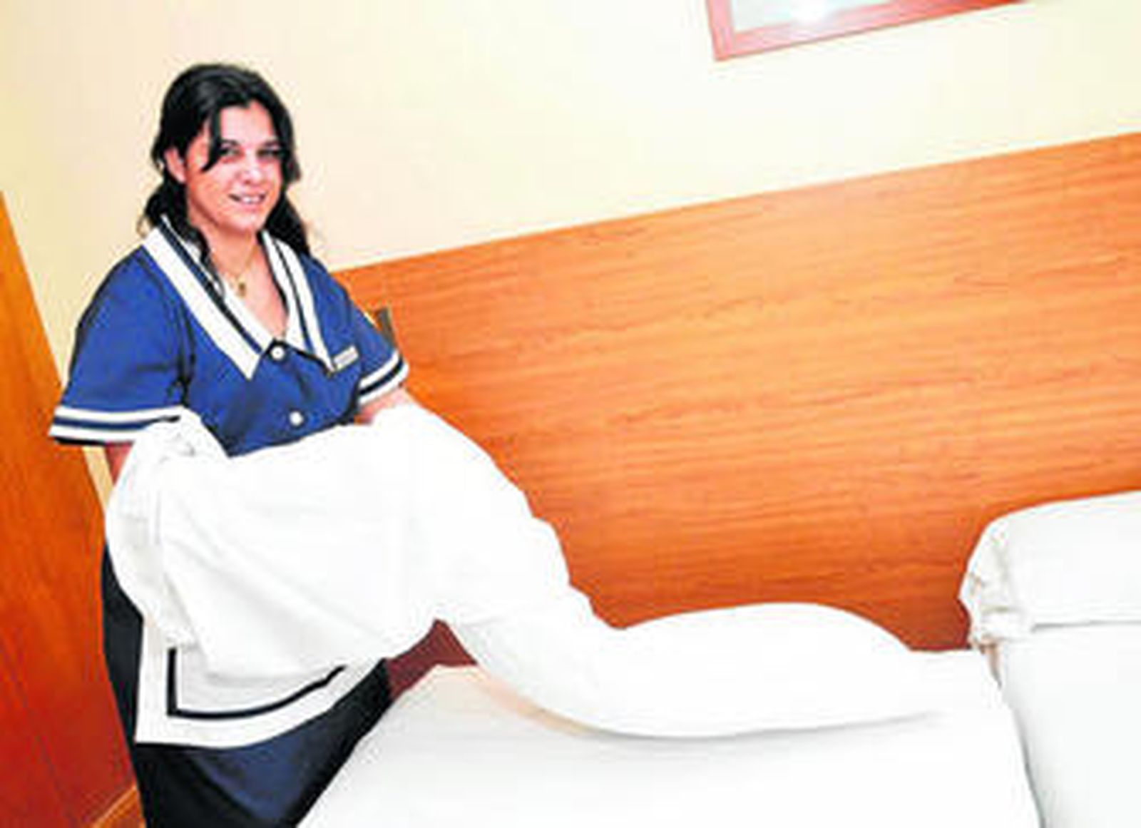 Milagros Cumbre es docente del curso de Operaciones Básicas en Alojamientos Turísticos y asegura que en este curso, "he intentado innovar". Así, la parte teórica consiste en el aprendizaje de idiomas como el inglés, habilidades sociales, taller de costura y "todas las competencias relacionadas con pisos, como revisión de habitaciones, tareas específicas, requisitos personales que necesita una persona para trabajar en un hotel y se trabaja mucho la atención al cliente, que tiene casi más peso que el propio trabajo en sí", comenta Milagros. Jéssica Guillén, de 27 años, no se lo pensó cuando le propusieron hacer este curso. "Desde un primer momento quise hacerlo. La verdad es que estoy bastante satisfecha. Era necesario. Mi marido y yo estamos en paro y tenemos dos hijos. Estamos de alquiler y la verdad es que no tenemos ayuda de nadie, de ningún familiar". En los siguientes seis meses de prácticas, Olga Becerra, gobernanta del Tryp Jerez y tutora de Jéssica, se encarga de enseñar a los alumnos a aplicar la teoría. "Se va poco a poco y el objetivo es que en este tiempo aprendan todo lo necesario en el Departamento de Pisos. Se tiene muy en cuenta la puntualidad, el trato con el cliente y las ganas que tienen de hacer las prácticas, algo que pienso que es fundamental. Si es así, nos comprometemos a tener una cantera para el futuro". Milagros asegura que sus alumnas, que son un total de 15, "aunque la mayoría son buenas, Jéssica destaca porque es bastante serena y tiene un alto grado de adaptación".
