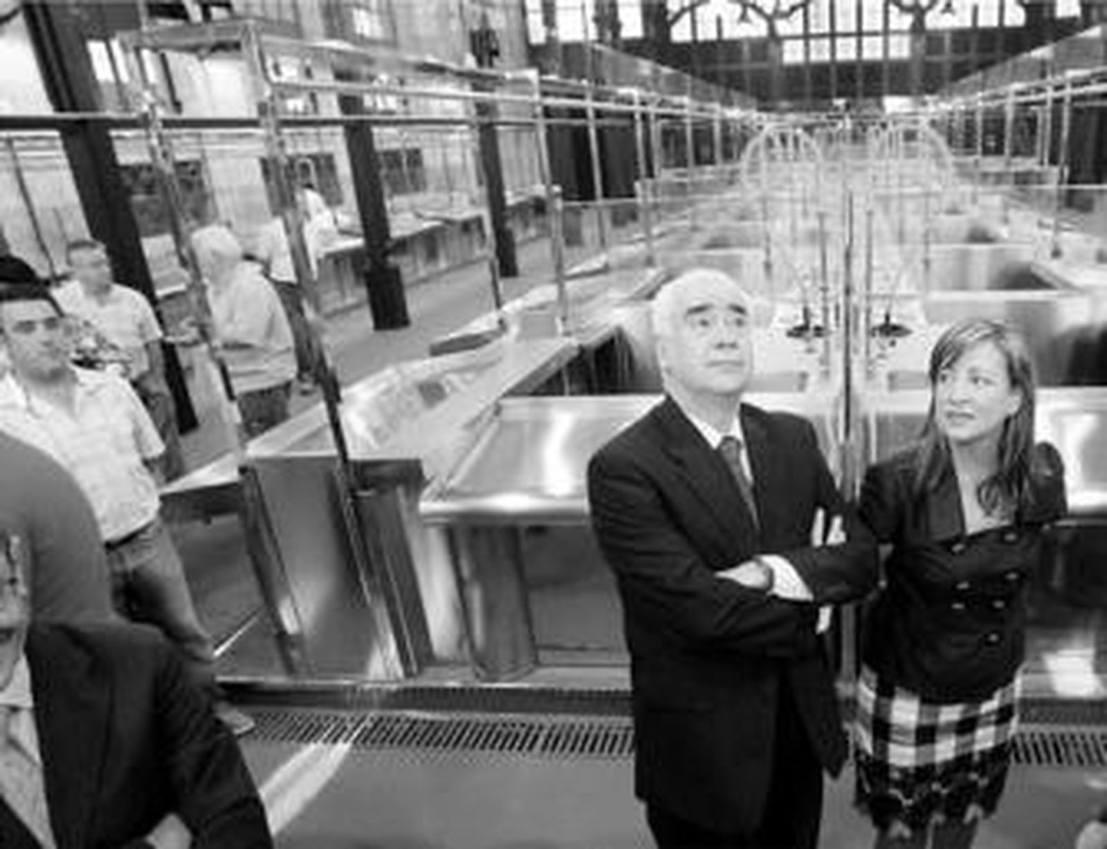 Las instalaciones ayer inauguradas podrán ser estrenadas por los 42 pescaderos del mercado el próximo martes. Cabe destacar que los puestos no tienen nada que ver con los antiguos. El mármol ha dejado sitio al aluminio y el acero inoxidable y los viejos grifos han sido suplidos por modernos surtidores de agua extensibles. El suelo de la plaza -que tantos resbalones ha visto a lo largo de los años- ha sido cambiado por un piso antideslizante de color verde. Igualmente, se ha saneado la cubierta de la nave del pescado, dejando a la vista la totalidad del esqueleto metálico que hace de esta construcción de 1885 un edificio singular y único. Un dato especialmente curioso es que todos los puestos, además de agua y electricidad, disponen de conexiones telefónicas con posibilidad de acceso a internet.